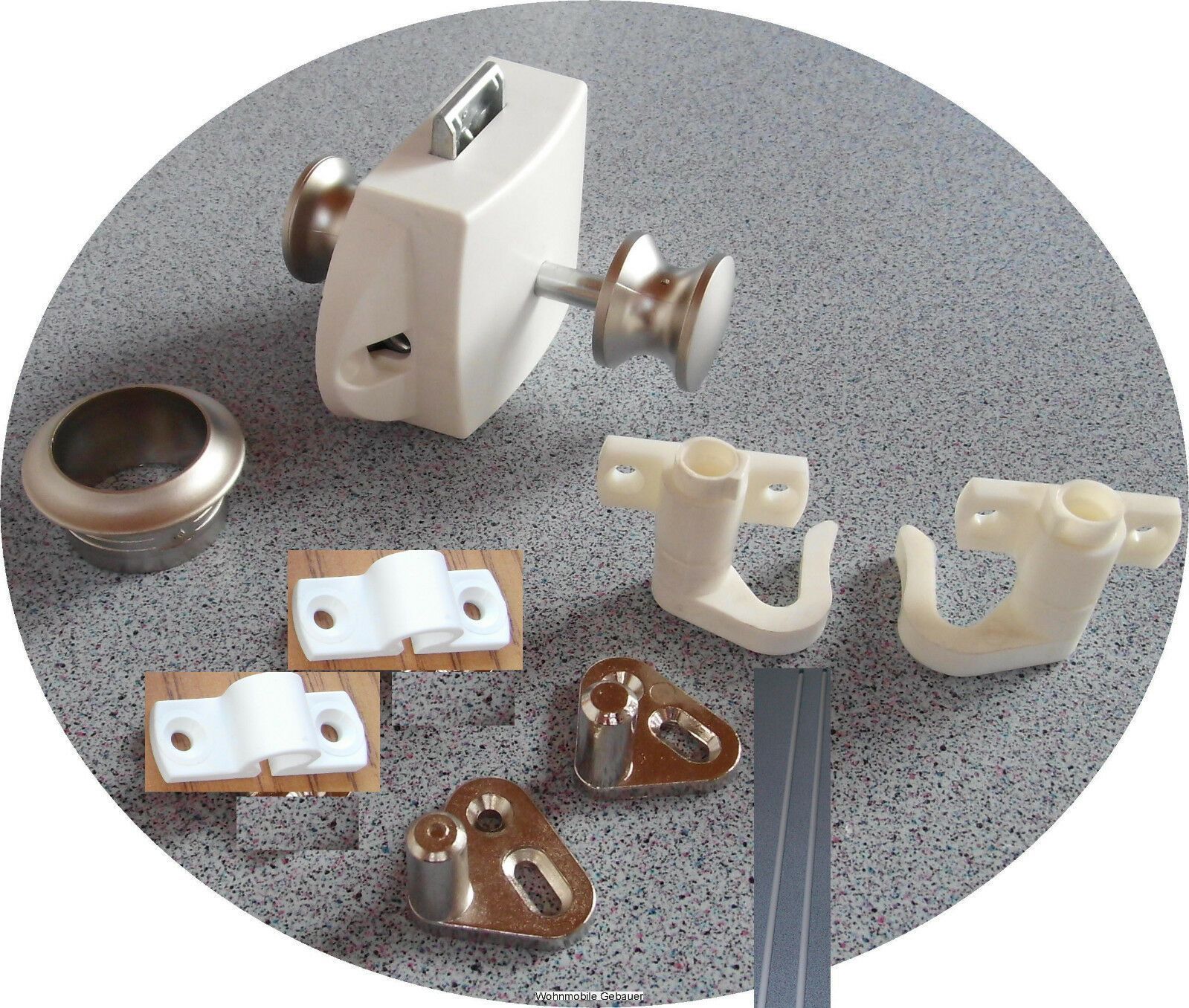 Push Lock + Stangen Schloss beidseitig bedienbar silber2/ weiß kompl. 200203Lg NEU