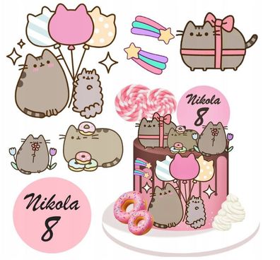 • Cat Essbar Pusheen Tortenaufleger Torte Geburstag Zuckermasse + NAME