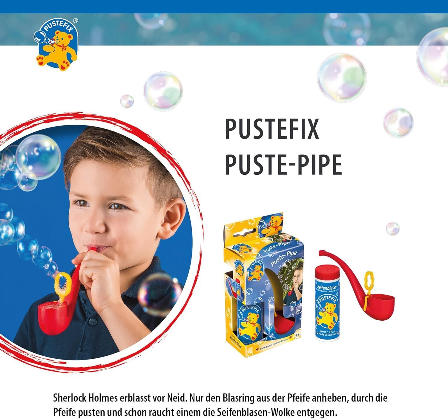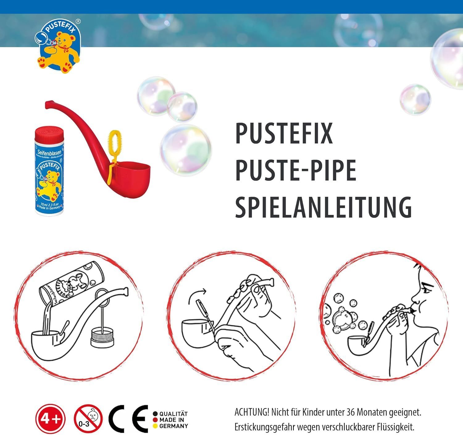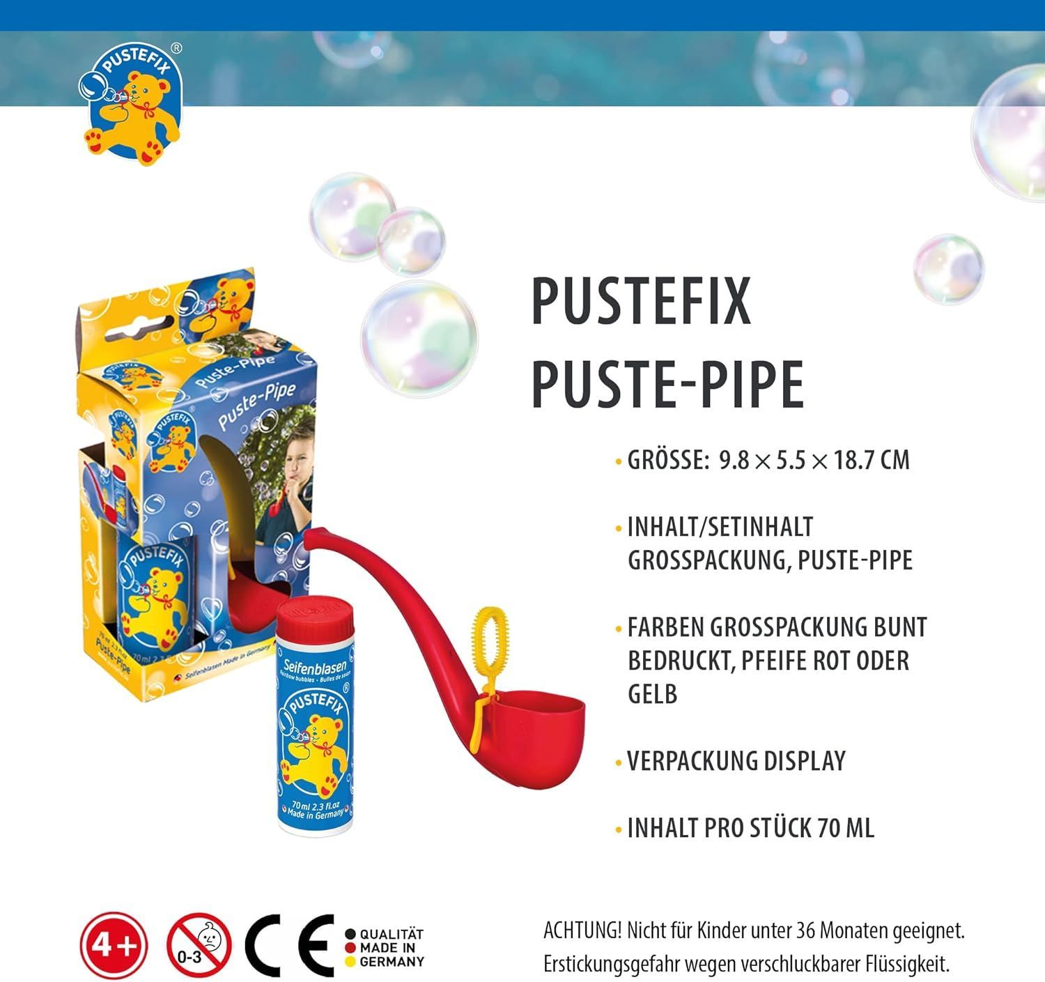 Pustefix Pustefix Puste-Pipe I 70 ml Seifenblasenwasser I Bunte Bubbles Made in Germany