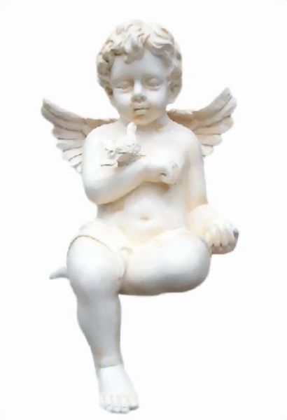 Putte sitzend mit Täubchen verkleinert 62cm für draußen aus Polyresin