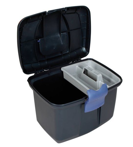 Putzbox Roma KE 321770V • große Putzbox in moderner Form- und Farbgebung • eine stabile, in der Mitte platzierte Verschlussklappe sorgt für schnelles Öffnen und Schließen • mit einem stabilen im Deckel integrierten Tragegriff kann auch eine vollgepackte Box sicher getragen werden &bul