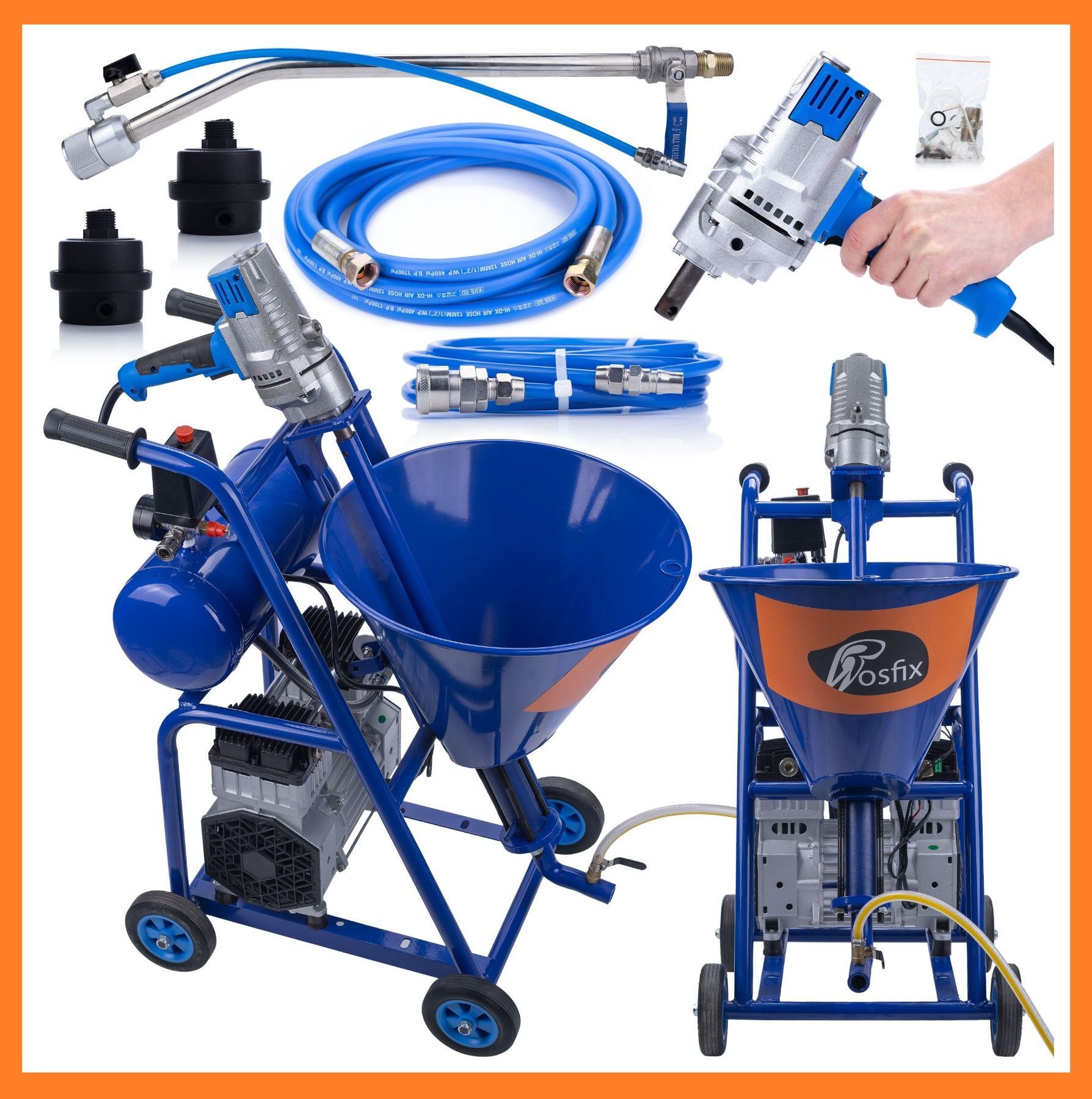 mit Spritzausrüstung Komplett - Rosfix Blue Dragon BD41 Putzgerät 4100 W 15 l min 20 MPA Leistung: Er hat eine Kapazität von 15 Litern pro Minute und einen Arbeitsdruck von 20 MPA, was ihn ideal für eine Vielzahl von Putzanwendungen macht. Hohe Leistung von 4100 W: Angetrieben von einem leistungssta