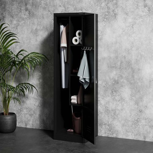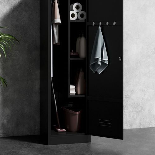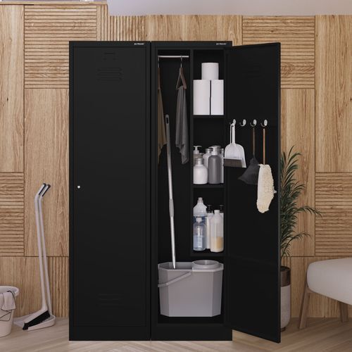 Putzmittelschrank Besenchrank Metallschrank Spind 2 Abteile 185x50x50 cm Schwarz