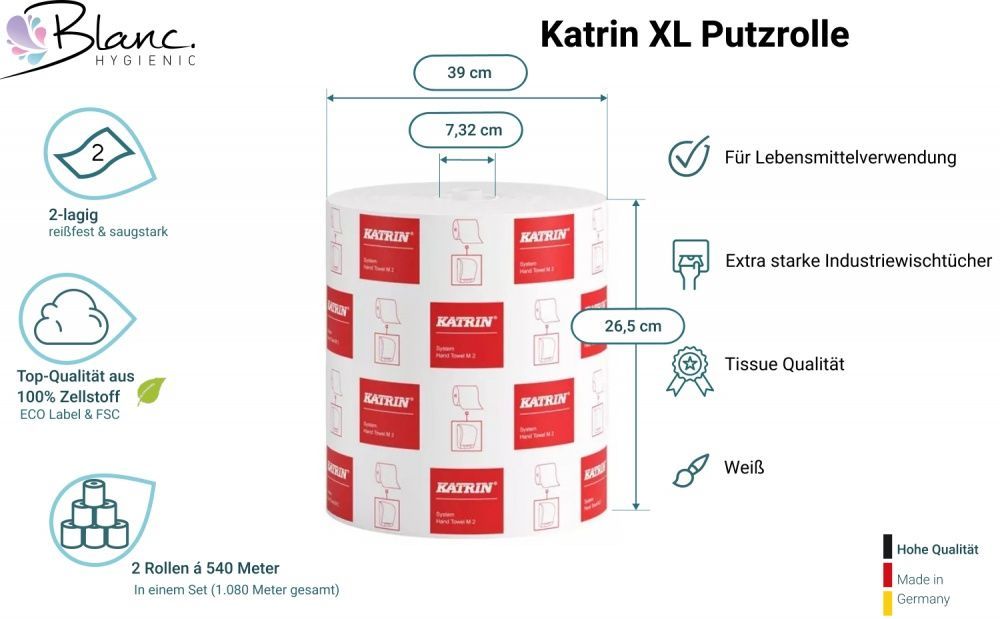 Katrin Putzrolle KATRIN Putztuchrollen XL 1500, 2-lagig, weiß, 3.000 Abrisse, 2 Rollen, gesa
