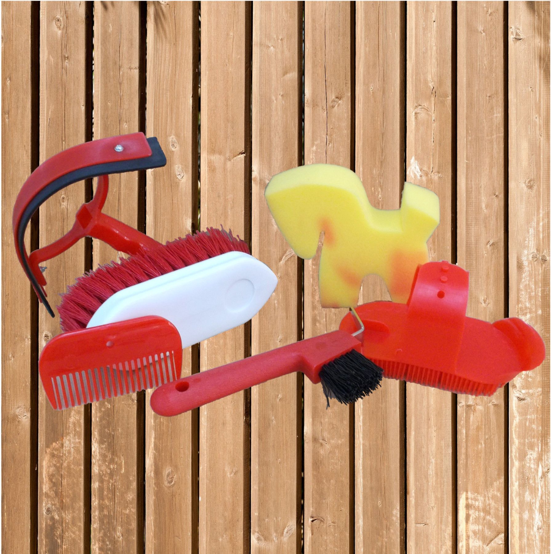 • Putztasche, Putzbox für Kinder, mit Inhalt, Putzzeug wie Striegel, Kardätsche... rot