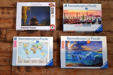 • Set: 4x Ravensburger Puzzle 1000 und 3000 Teile Panorama Schmidt vollständig