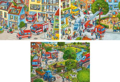 • Puzzle Unterwegs mit der Feuerwehr - 3 Puzzle mit je 49 größeren Teile 17,8 x 17,8 cm