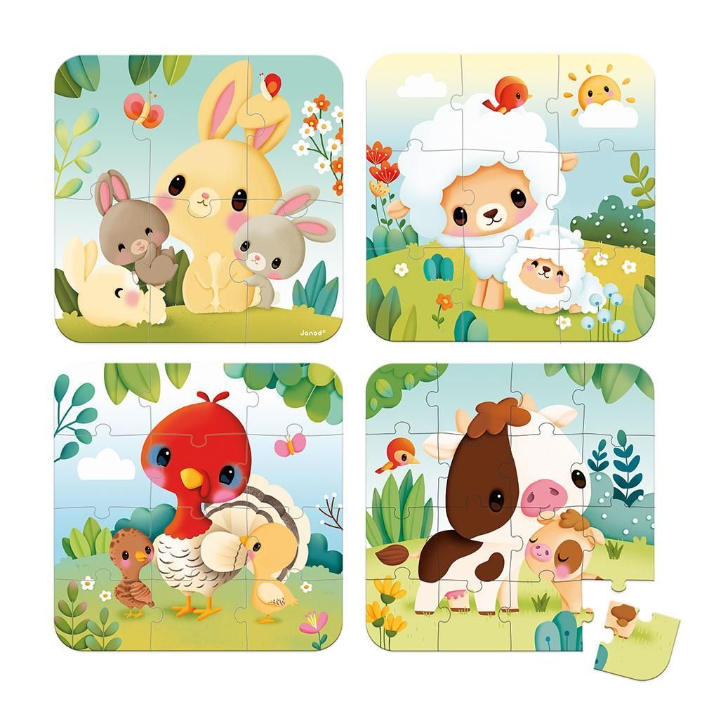 Janod Puzzles volutifs Janod 4 Puzzles ducatifs multicolores