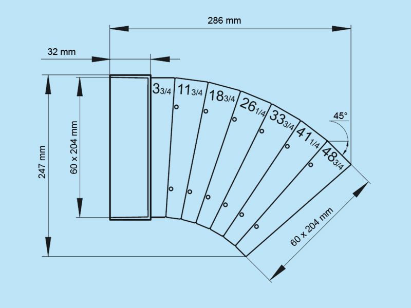 PVC Flachkanal Multibogen horizontal System 100 125 Abluft Zuluft