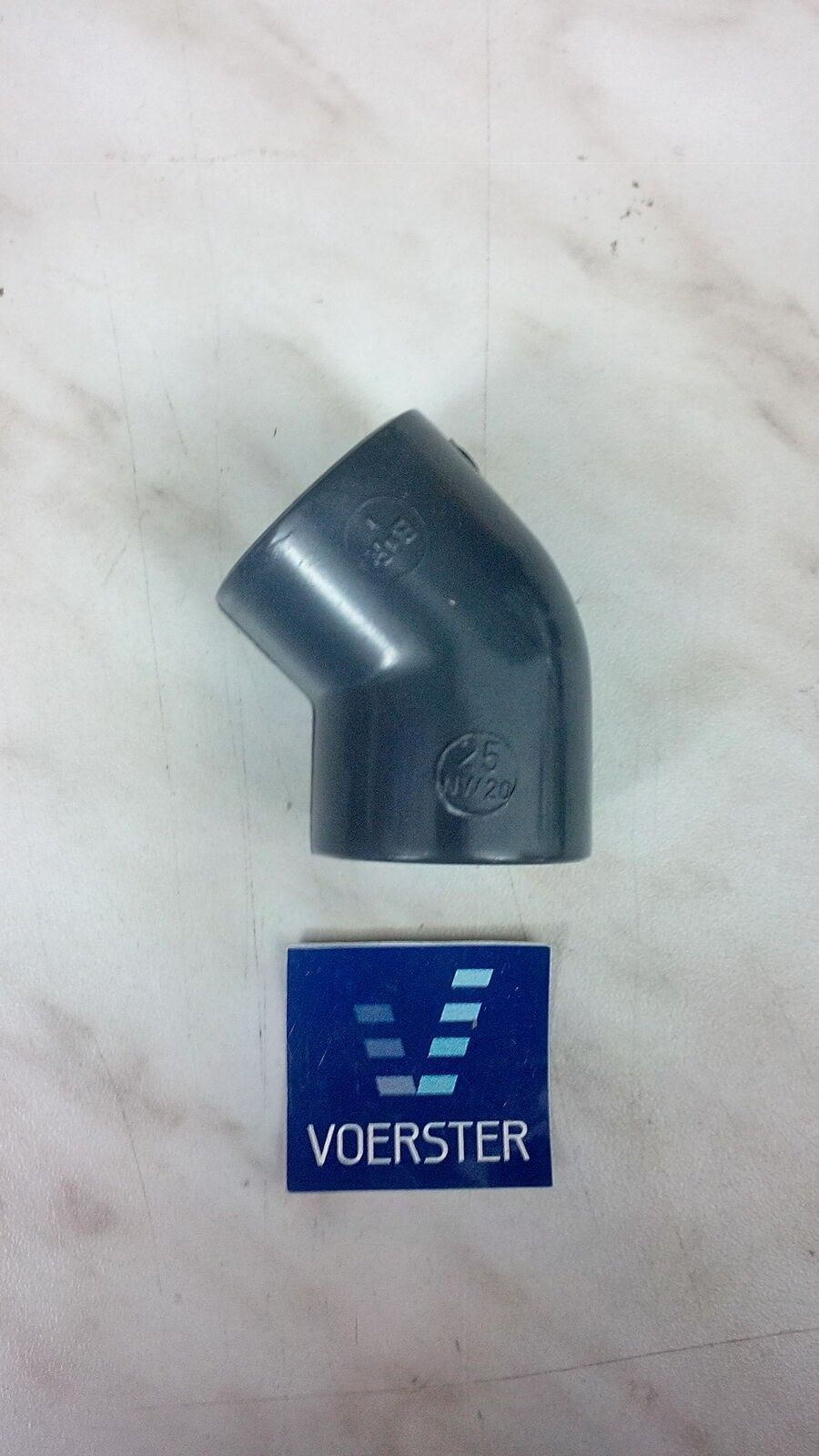 PVC Klebefitting Winkel 45° 25 mm mit beidseitiger Klebmuffe 16 bar PVC Klebefitting Winkel 45° 25 mm mit beidseitiger Klebmuffe 16 bar