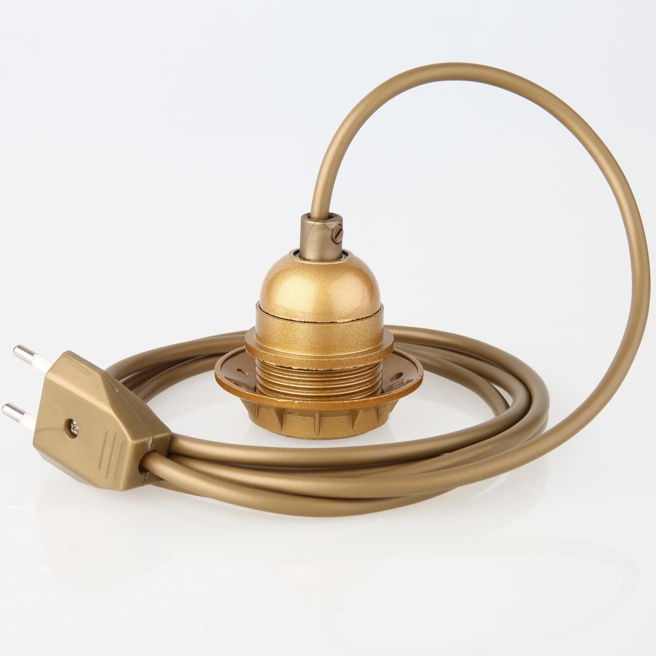 PVC Lampenpendel E27 mit Bakelit-Fassung, gold, Teilgewindemantel – Kabellänge