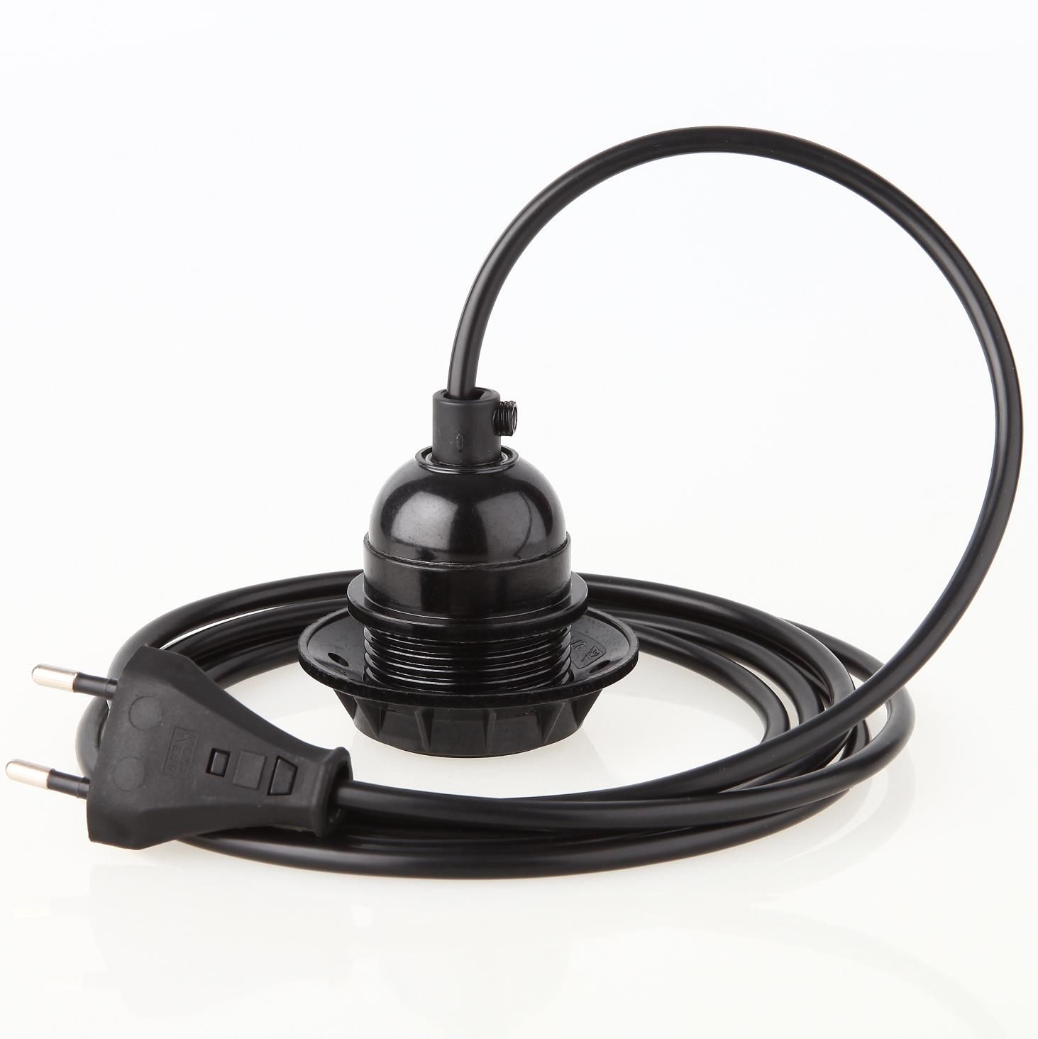 PVC Lampenpendel E27 mit Bakelit Fassung Teilgewindemantel & Schraubring, schwarz