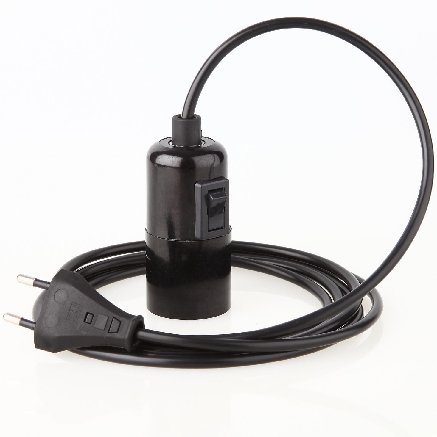 PVC Lampenpendel E27 mit Bakelit Glattmantel-Fassung und Schalter, schwarz – Kabel
