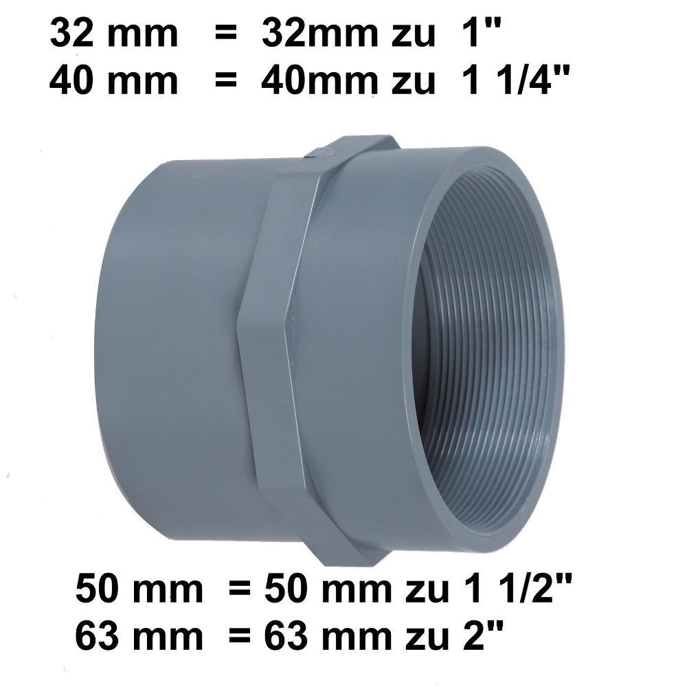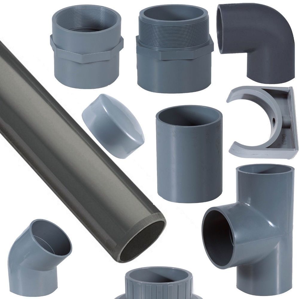 PVC Rohr 32 - 63 mm PVC Verbinder Winkel Kniestück Muffe T-Stück Fitting Fittings