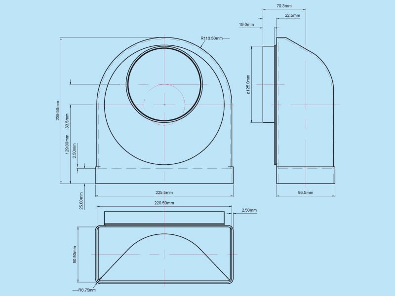 PVC Rundrohr Flachkanal Verbinder Umlenkstück System 100 125 150 Abluft Zuluft