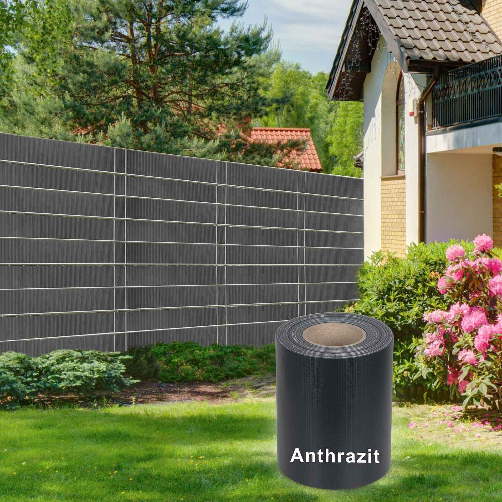 PVC Sichtschutzstreifen Doppelstabmatten Zaun 35m x 19cm Zaunfolie Anthrazit