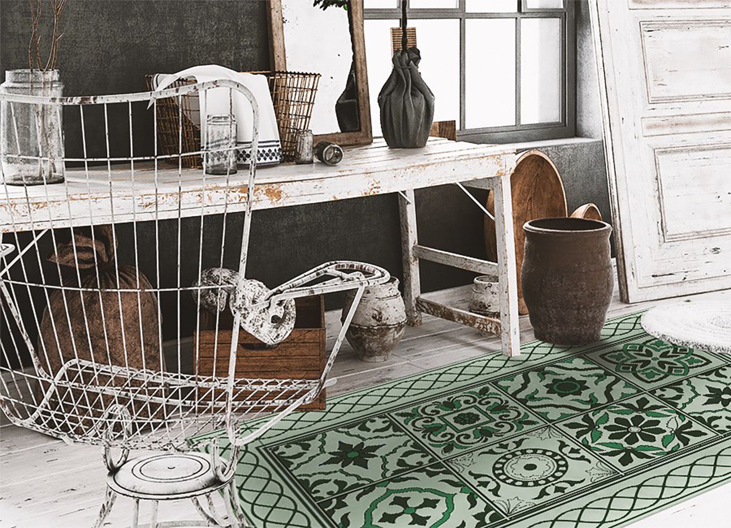 • Teppich Pvc Zum Wohnzimmer Tulup Grün blumen Bodenmatte