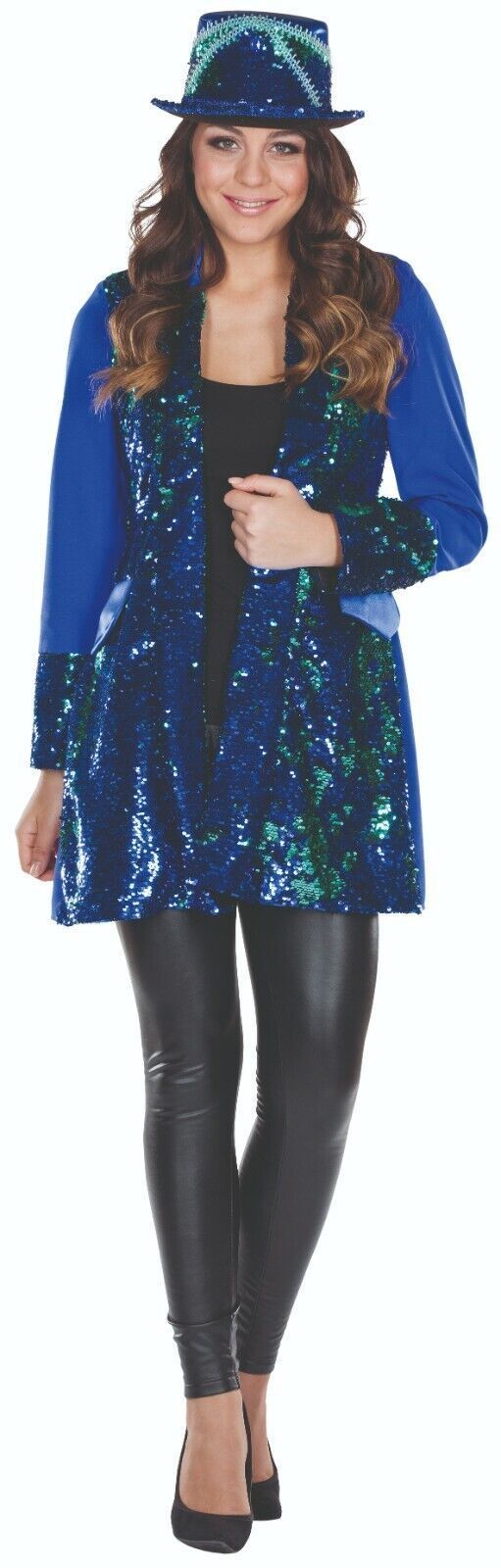 Pailletten Jacke Blaues Jacket, das auf der Vorderseite und den breiten Ärmelaufschlägen mit Pailletten besetzt ist. Indem man über die Pailletten streicht, wechselt die Farbe der Pailletten von Blau zu Grün. Beinhaltet: Jacke Warenzusammensetzung: 100% Polyester Ideal für K A R N E V A L , FESTIVAL