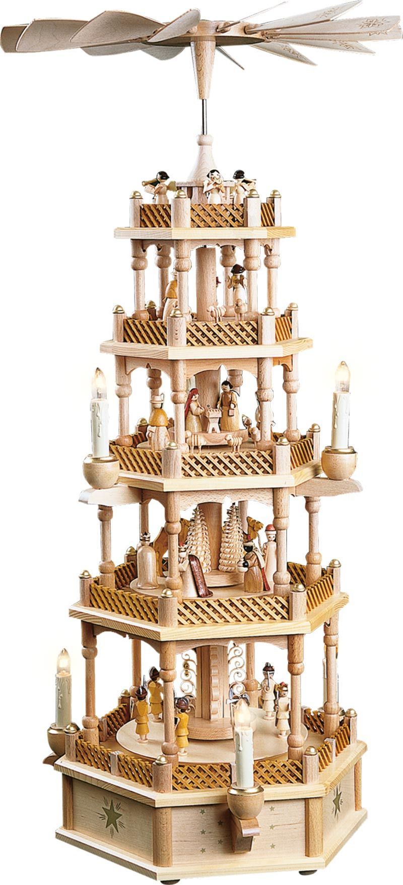 Pyramide Heilige Familie natur 4-stöckig, elektrisch, original Erzgebirge