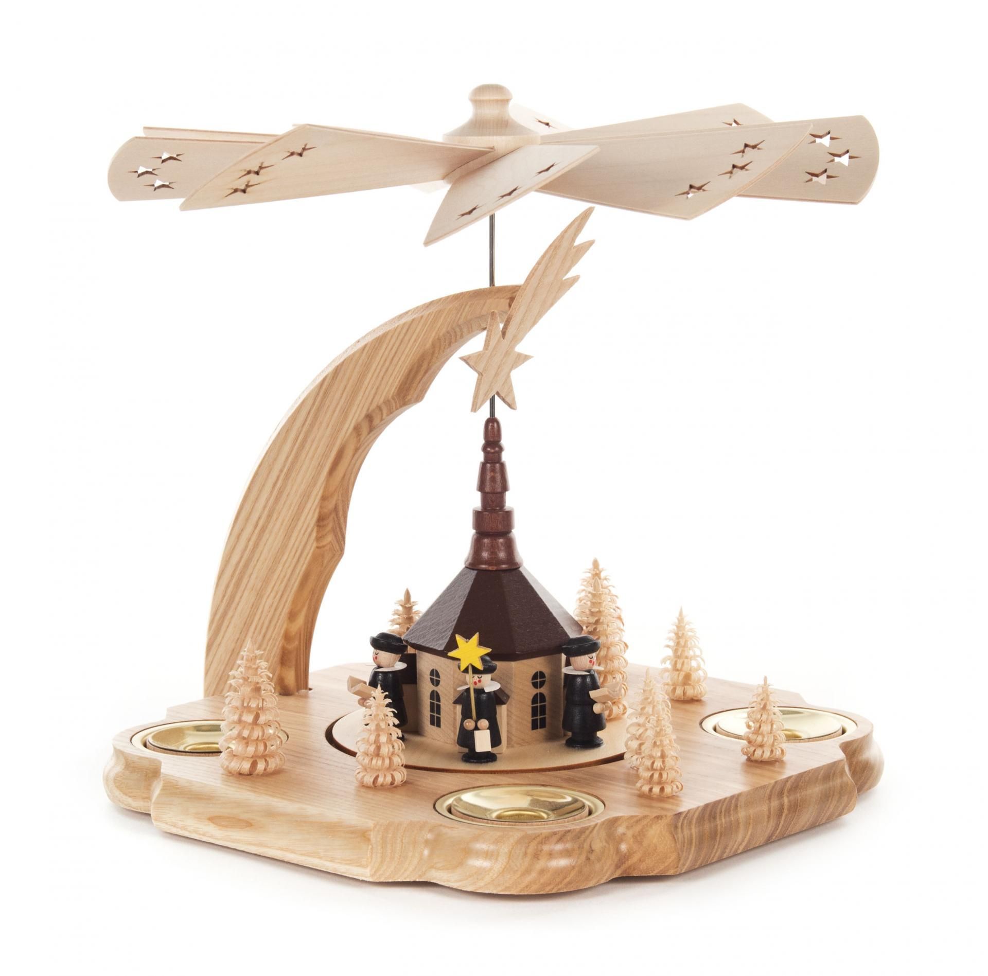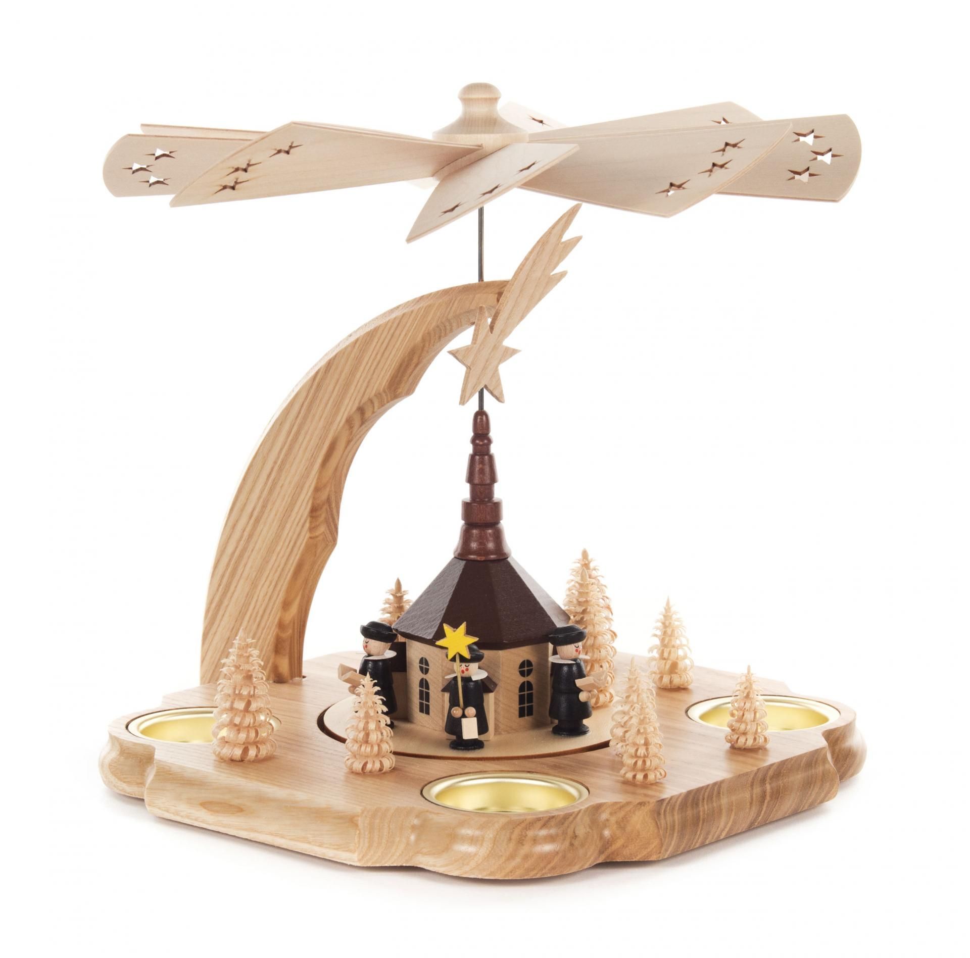 Pyramide mit Seiffener Kirche und Kurrende, für Kerzen oder Teelichte