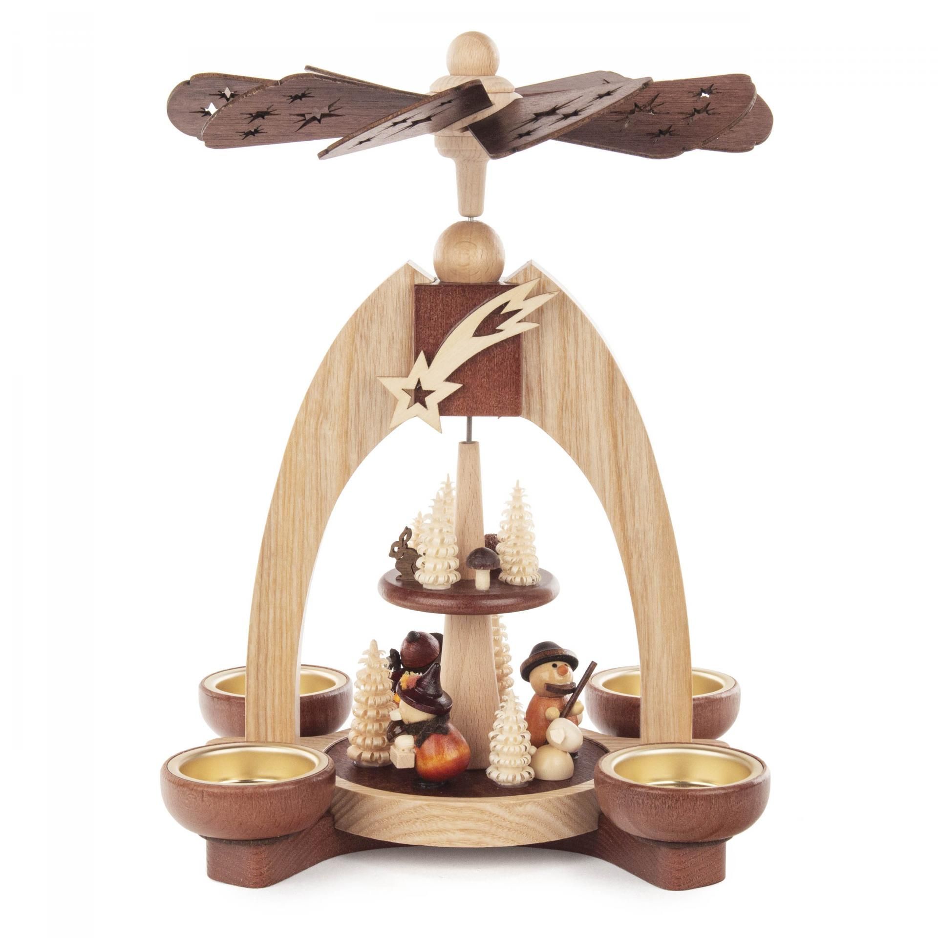Pyramide mit Waldfiguren 2-stöckig natur für Teelichte