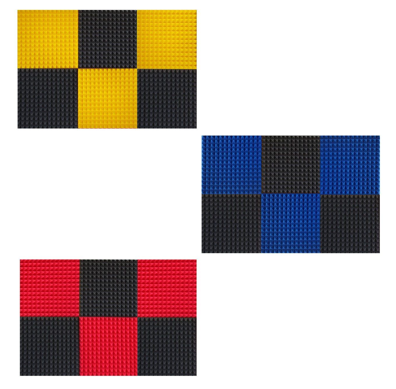 Schallschutz, Technische Akustik und Raumakustik Pyramiden Noppenschaum Königspyramiden Absorber PUR-Kleber Pyramiden Color (3 Stk. Blau & 3 Stk. Anth.) oder (3 Stk. Rot & 3 Stk. Anth.) oder (3 Stk. Gelb & 3 Stk. Anth.) Farbe(n): Blau Rot Gelb Anthrazit Maße je Platte ca. 50x50x5cm Norma