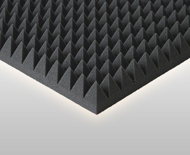 Schallschutz, Technische Akustik und Raumakustik Pyramiden Noppenschaum Königspyramiden Absorber PUR-Kleber Pyramiden-Schaumstoff Farben: Anthrazit dunkel Grau Maße ca. 98x98x6cm Normal ohne Brandschutz Das Resultat unseres 50 jährigen Know-how's mit dem Einsatz von Hochleistungspräzisionsmaschinen