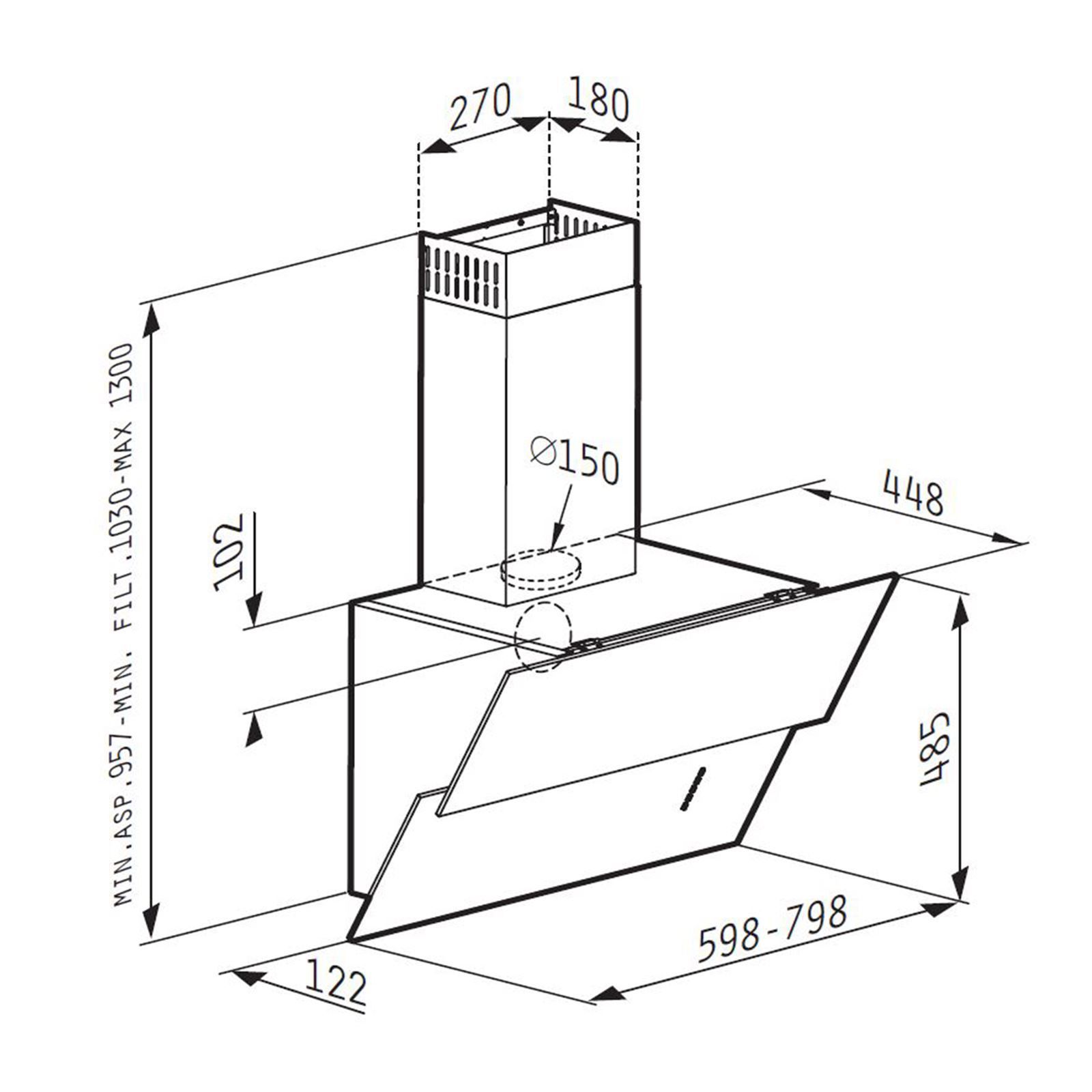 Pyramis Pyramis breite weiße Edelstahl Glas Wandhaube 80 cm Abluft