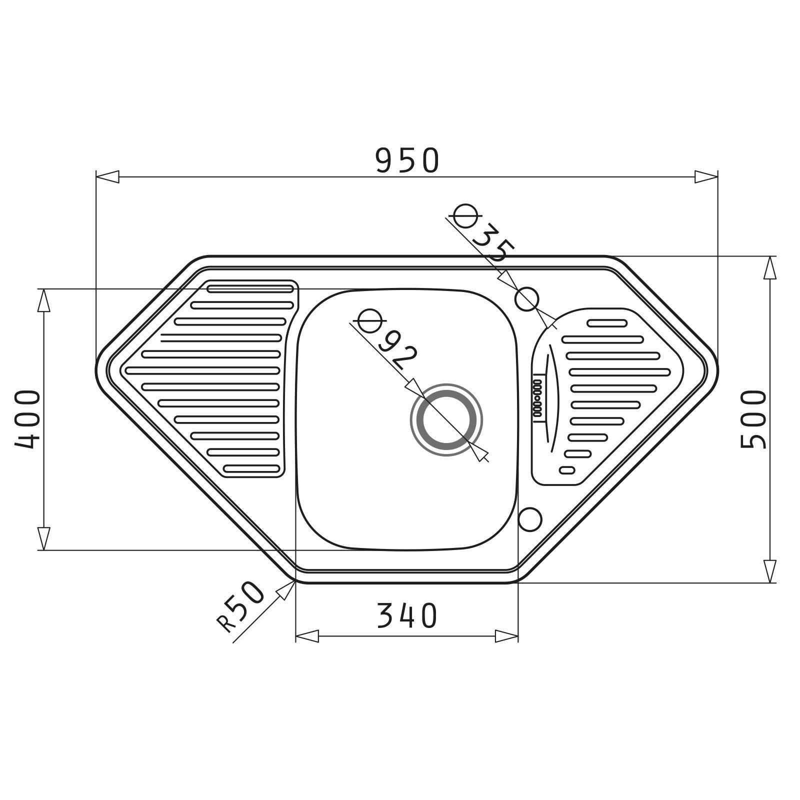 Pyramis Pyramis Einbau Eckspüle Edelstahl 95x50 cm - Küchenspüle 1 Becken mit 2 Hahnlöcher