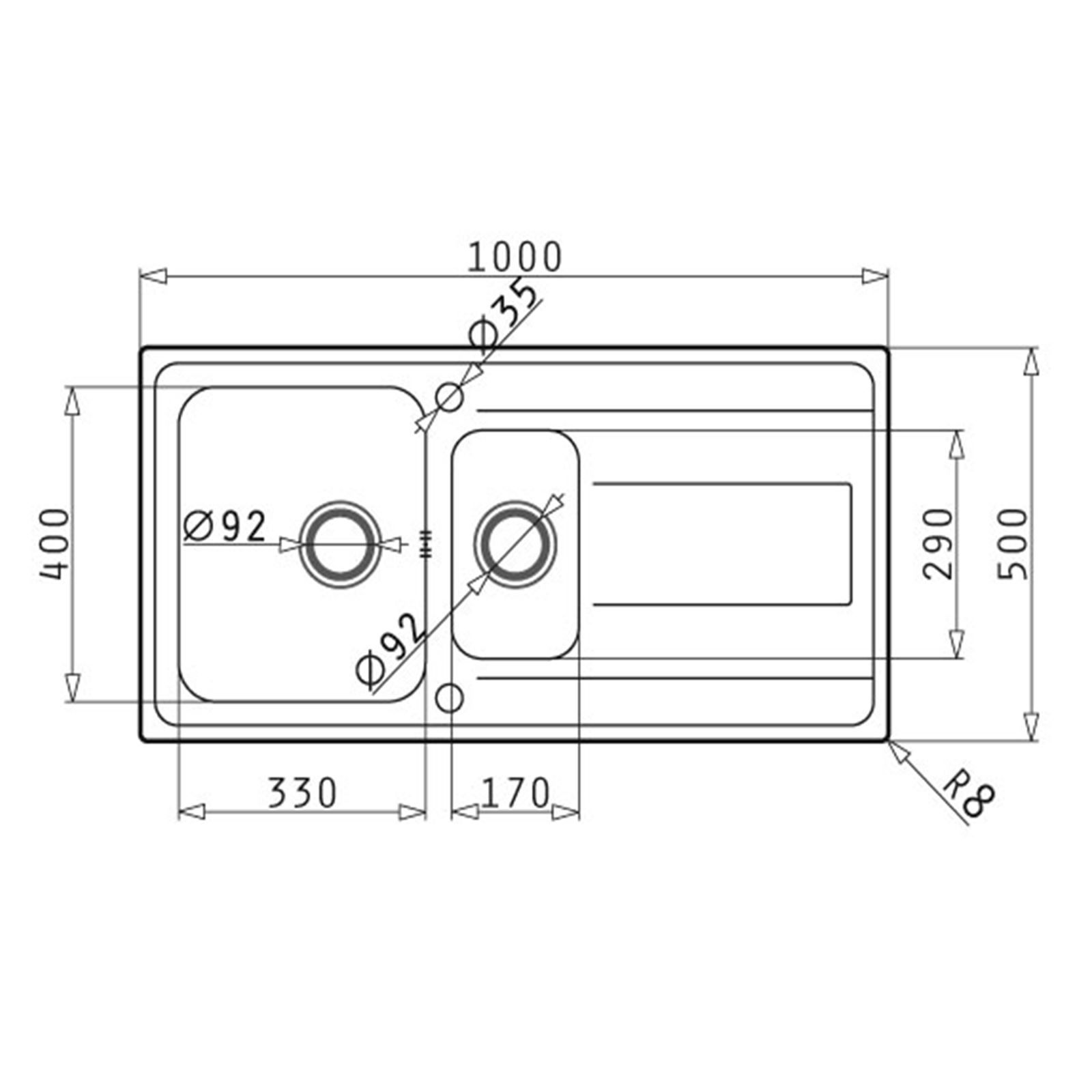 Pyramis große weiße Pyragranit Einbauspüle 100 cm 1 Becken links