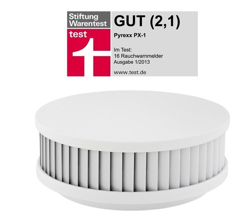 Pyrexx PX-1 Holz-Optik Hell Euro Made in Germany Euro Max. 12 Jahre Batterie-Lebensdauer (Lithium) Euro Bi-Sensor-Prozessor-Technologie (Rauch + Hitze) Euro Maximale Echtalarmpräzision Euro Küchentauglich Euro Alarmsignal > 85 dB Euro 60 m² Erfassungsbereich (je nach baulichen Gegebenheiten) Euro