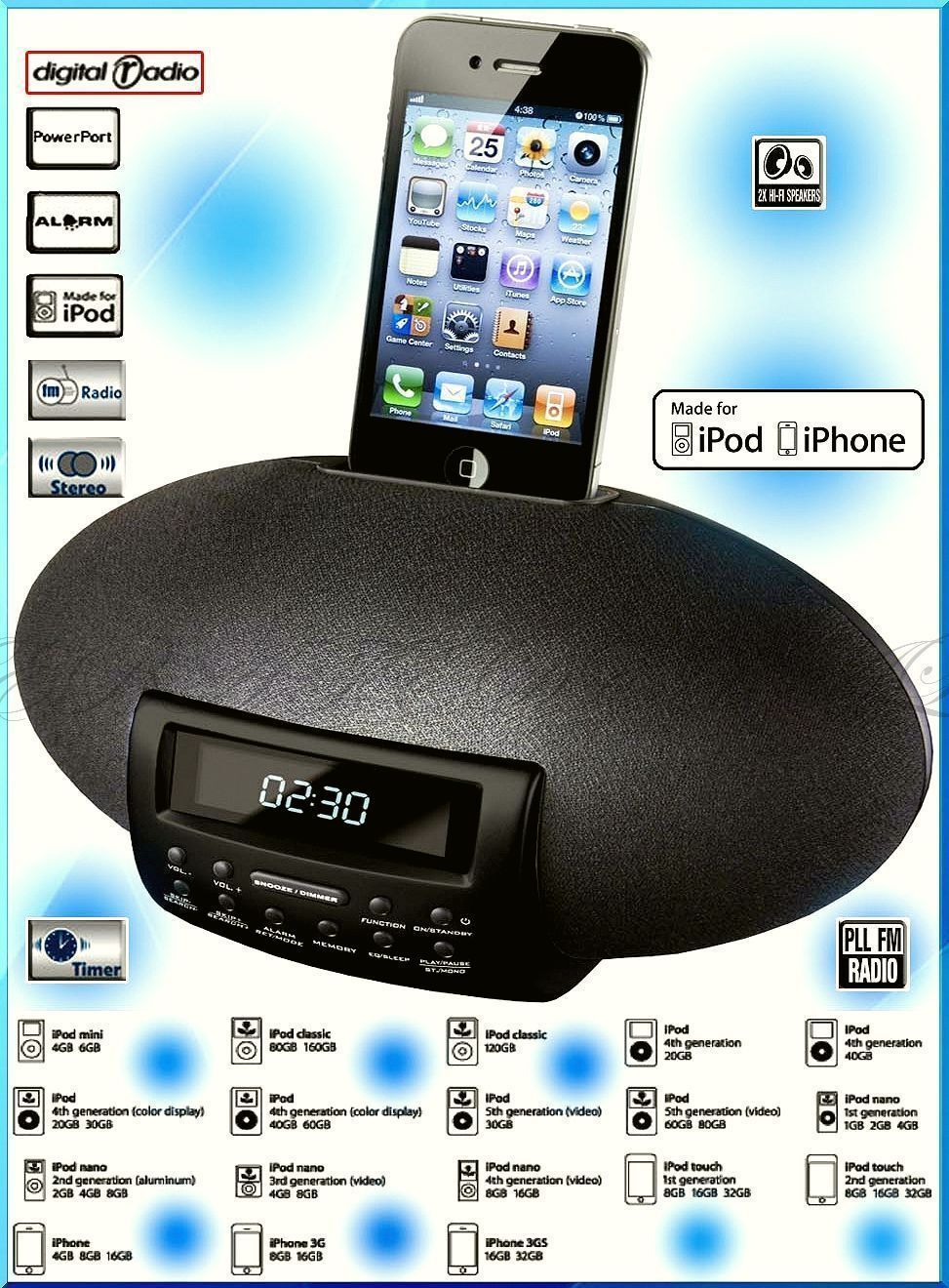 Q. MEDIA QIP5 Retro Radiowecker iPhone iPod iDOCK 32 PIN PLL Tuner 50W Schwarz