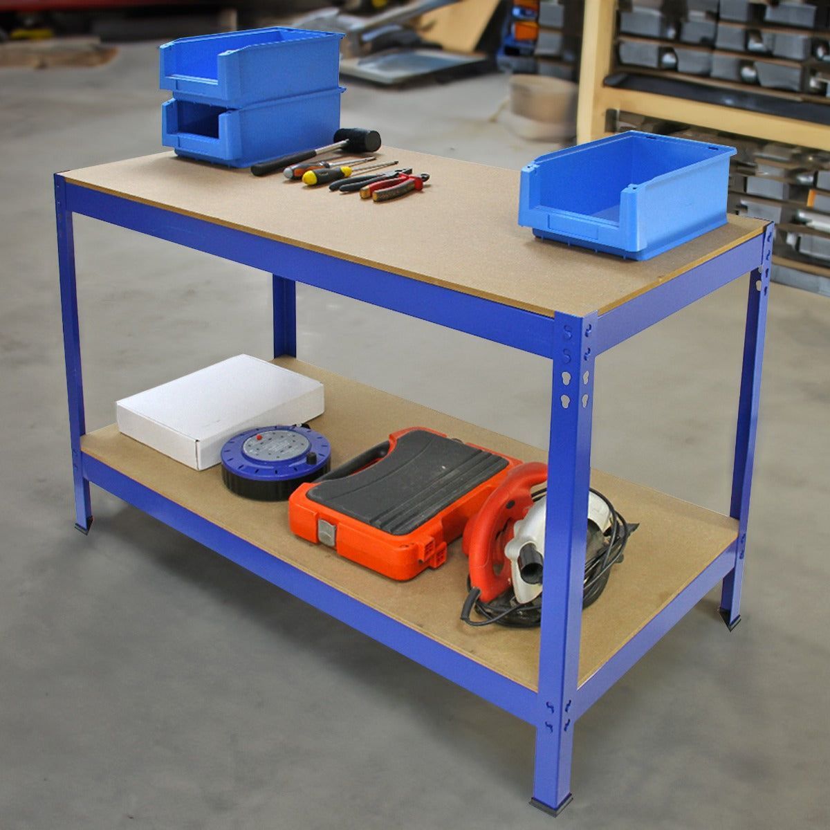 Q-Rax Werkbank Werkstattbank Werktisch Werkstatt Garage 120cm x 60cm x 90cm Blau