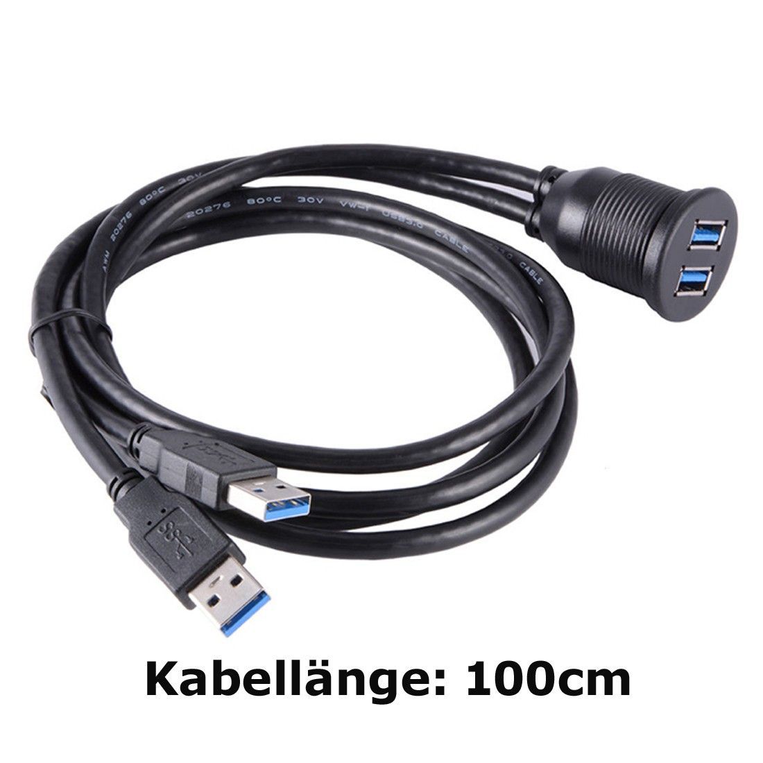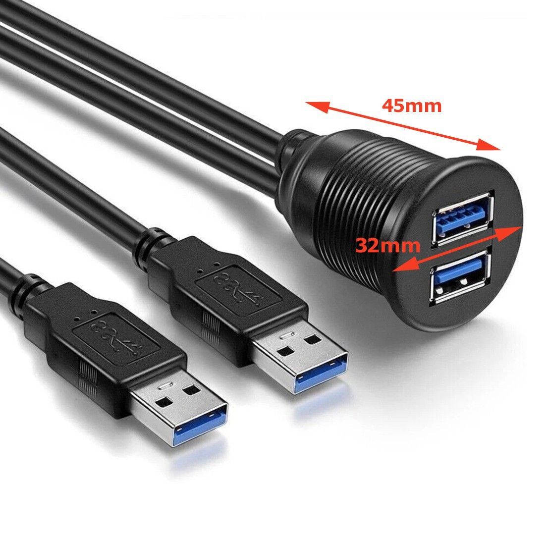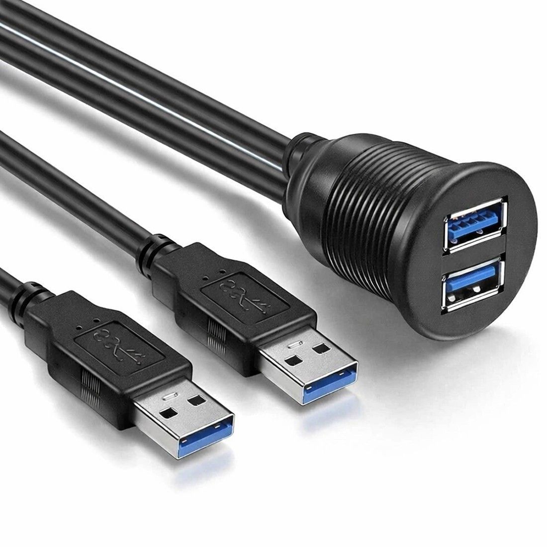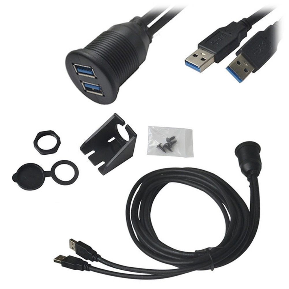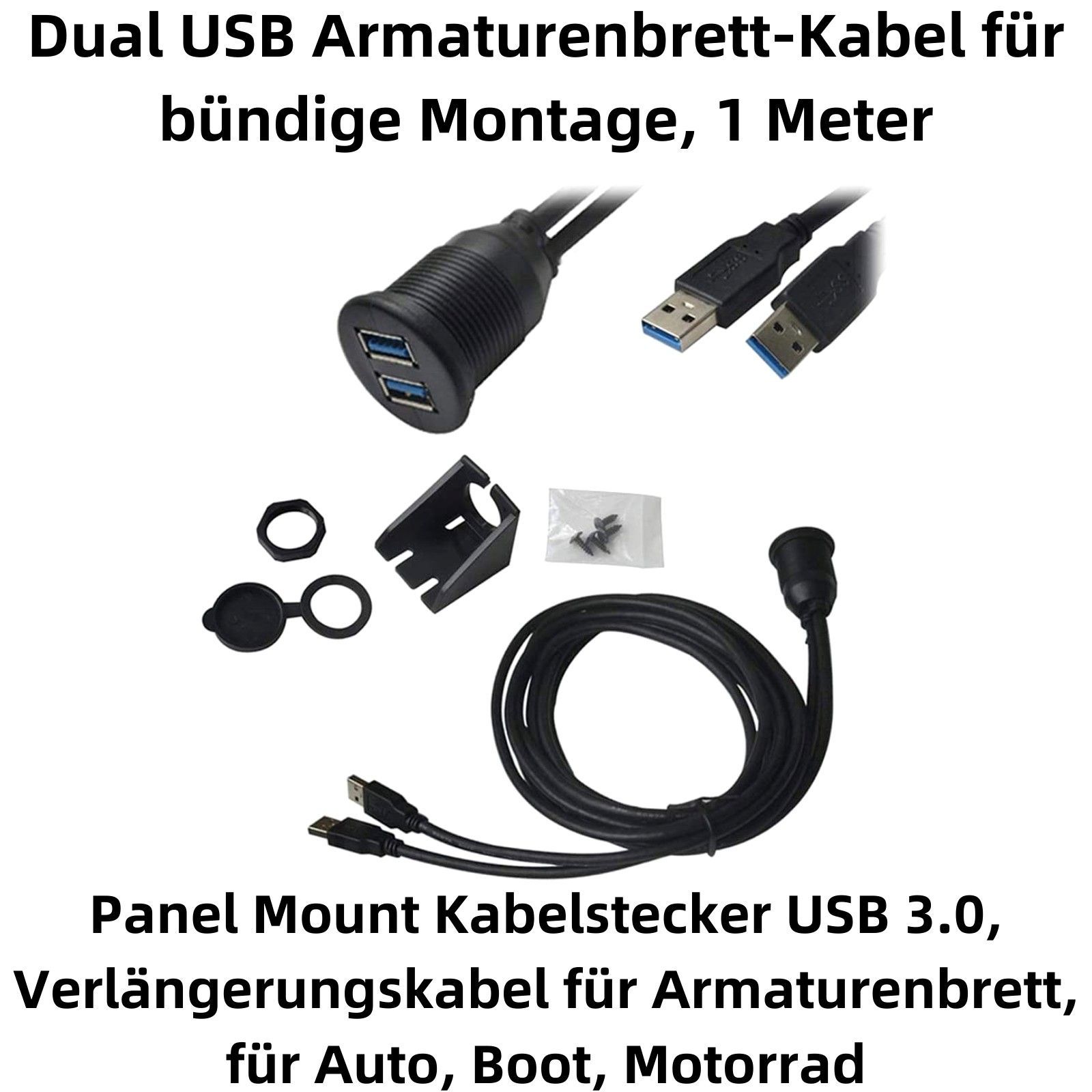 Q73C Auto Armaturenbrett Dual USB 3.0 Stecker auf Buchse Kabel Verlängerung 1m