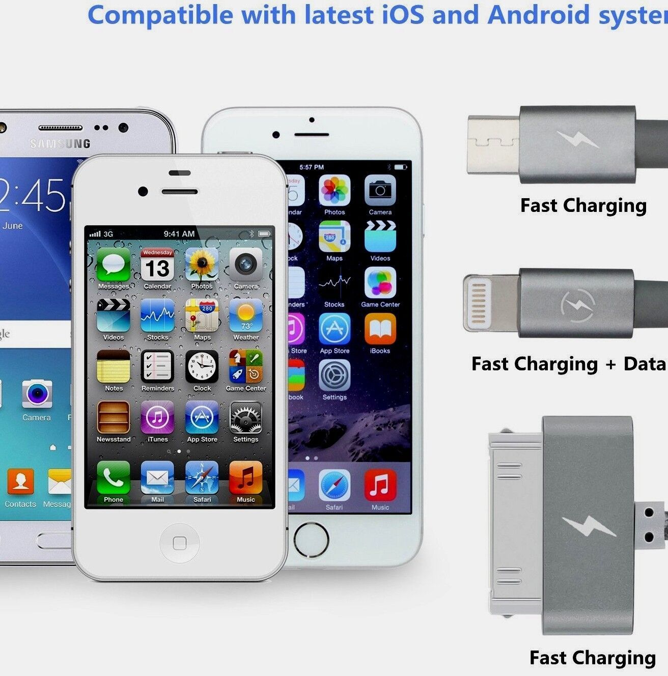 QH C750 Elite Soft Smartphone 3IN1 Ladekabel Micro USB 30 & 8 Pin iPhone Samsung