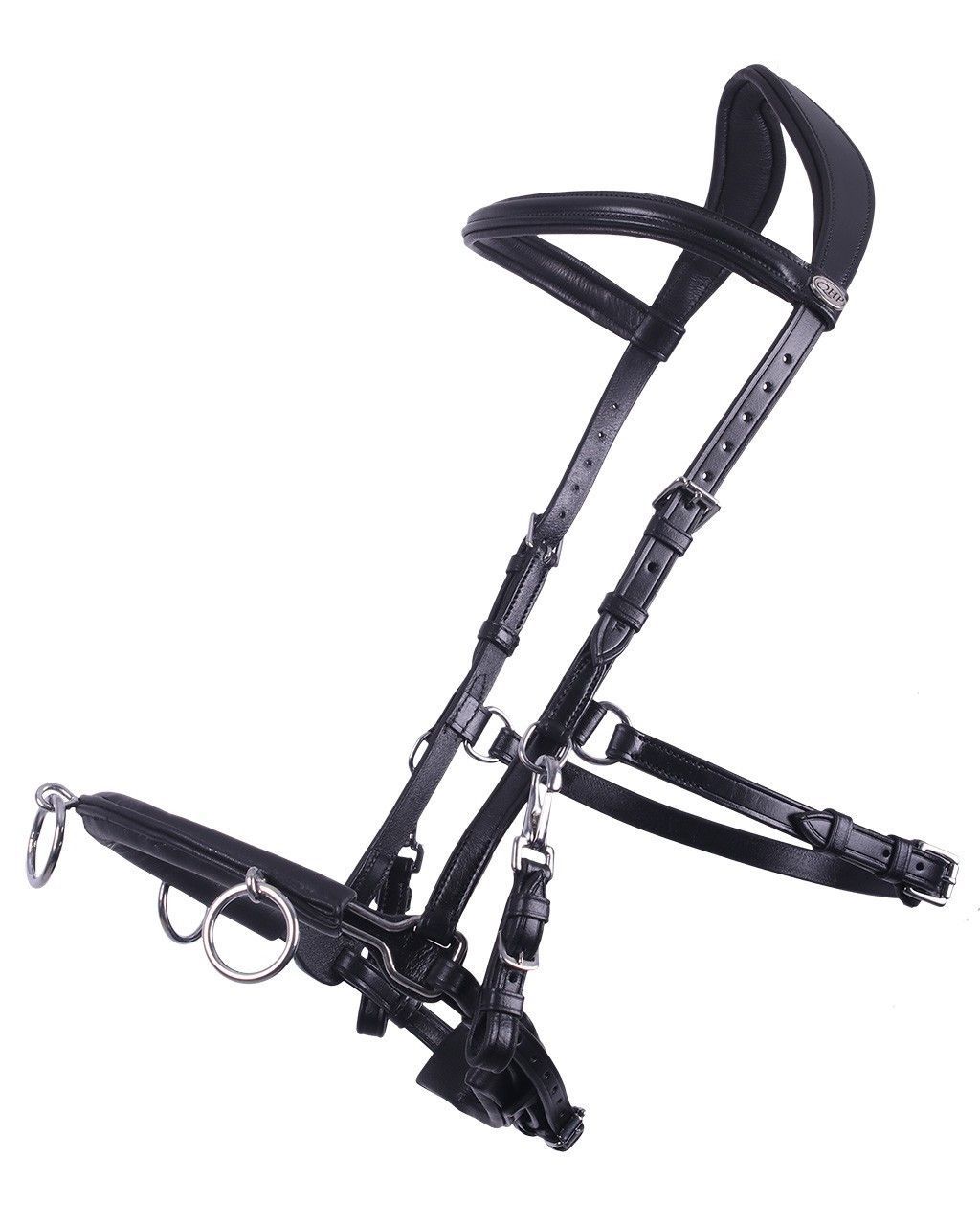 QHP Cavecon Kappzaum m. Gebiss nutzbar, Leder, schwarz, braun, Vollblut Warmblut Pony