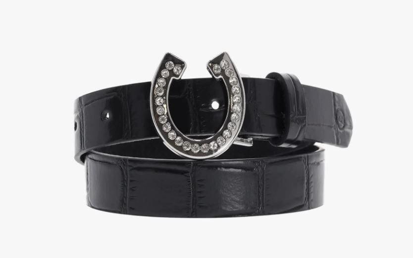 QHP Kinder Gürtel Lize black mit silbernem Hufeisen