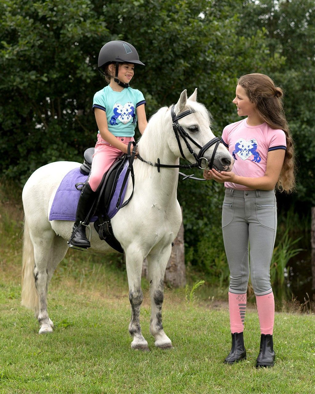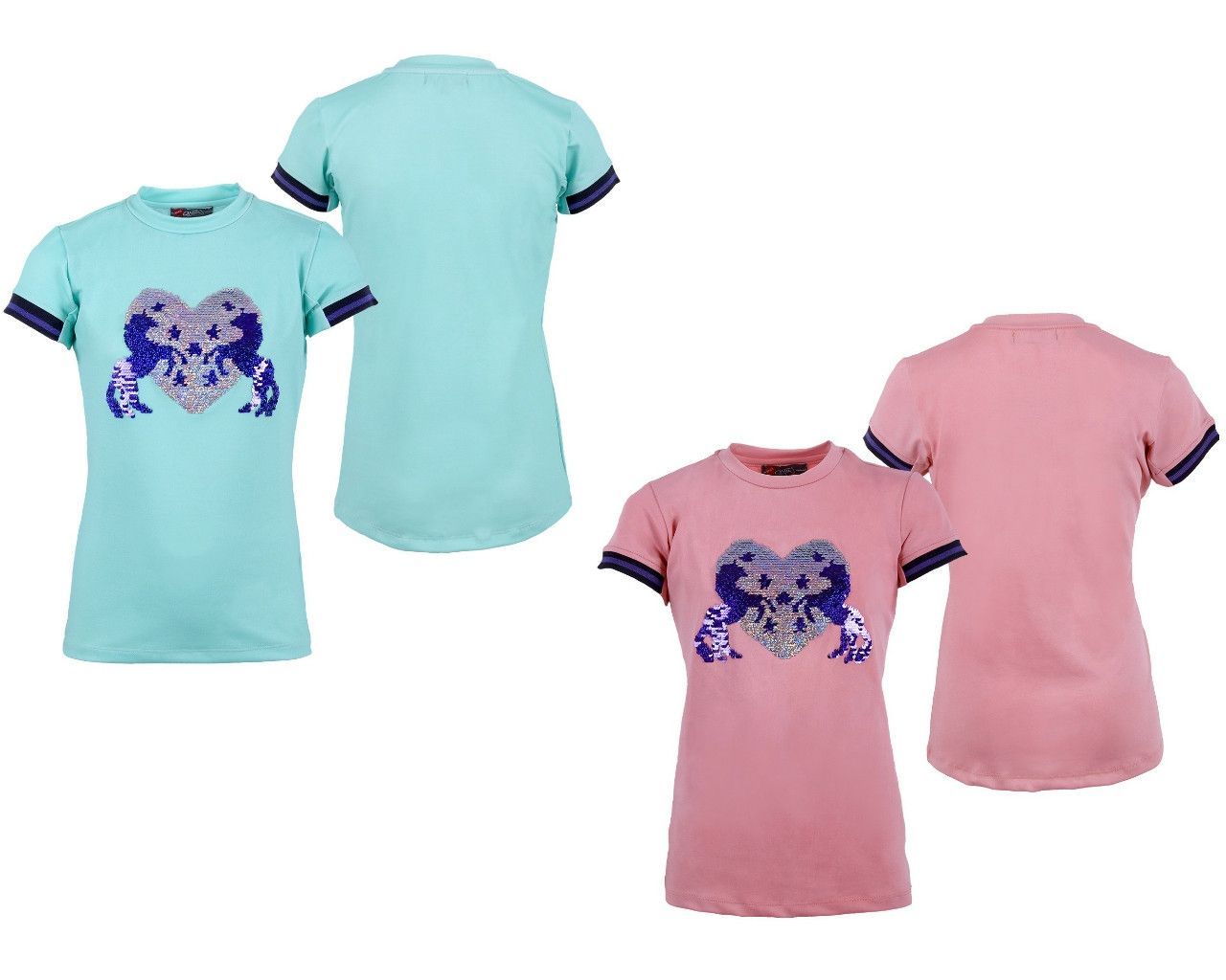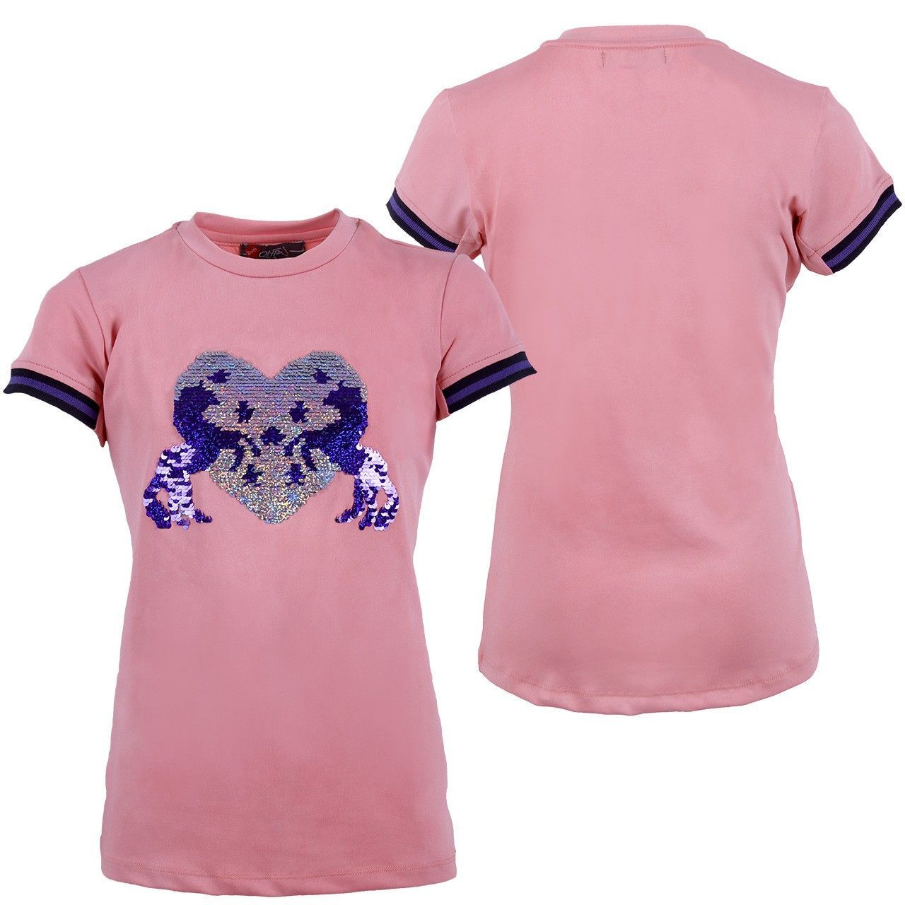 QHP Kinder Sporthemd Esma, Shirt T-Shirt Kindershirt mit Pailetten pink blau