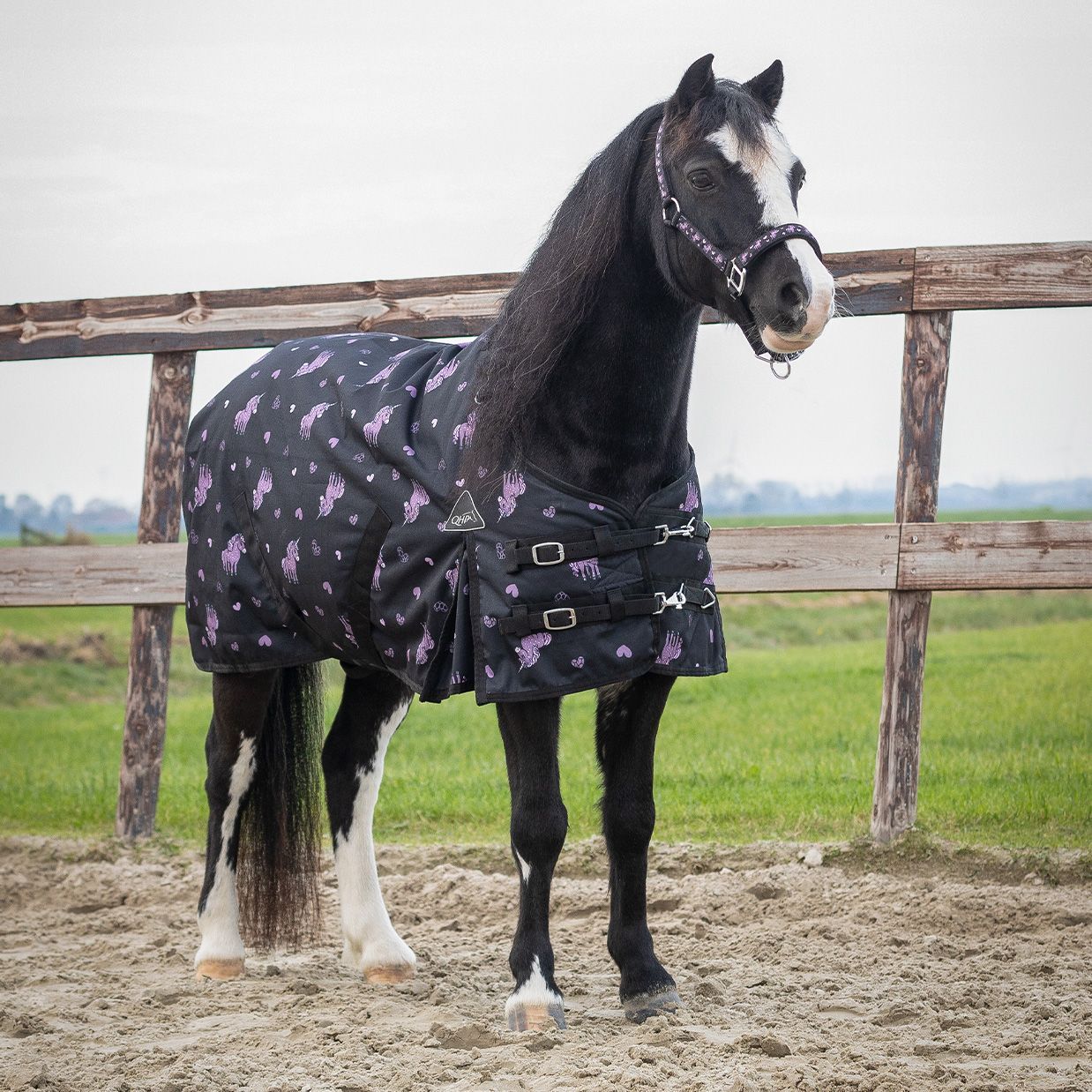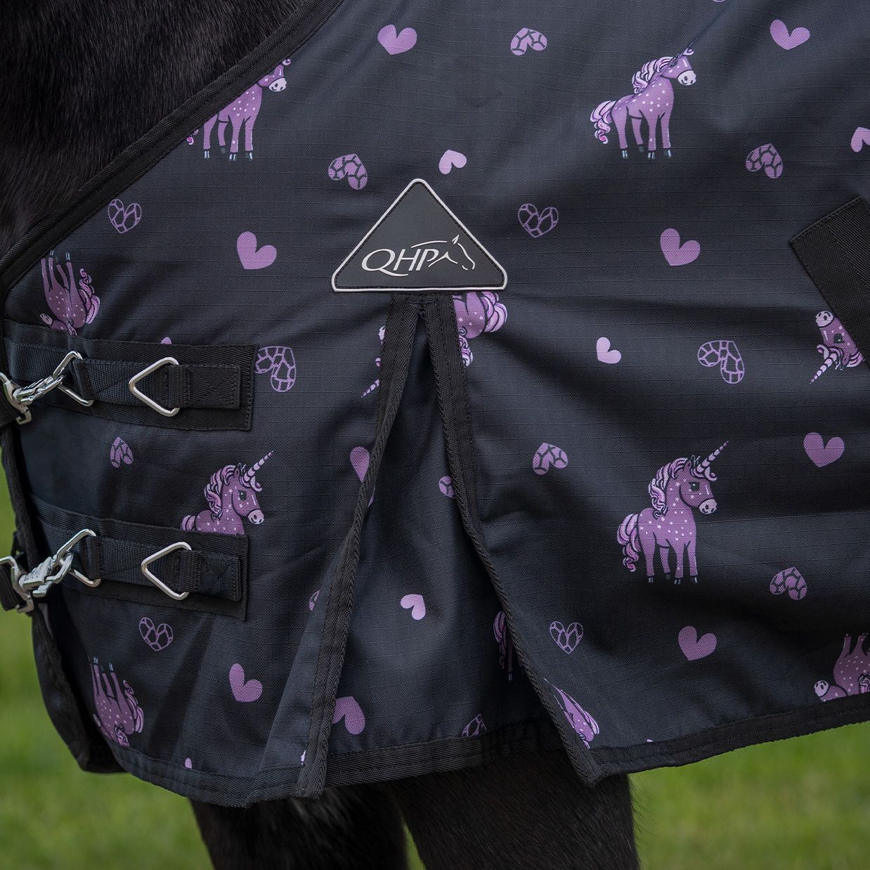 QHP Regendecke Turnout Lize 100g zwart/violet schwarz lila 600D