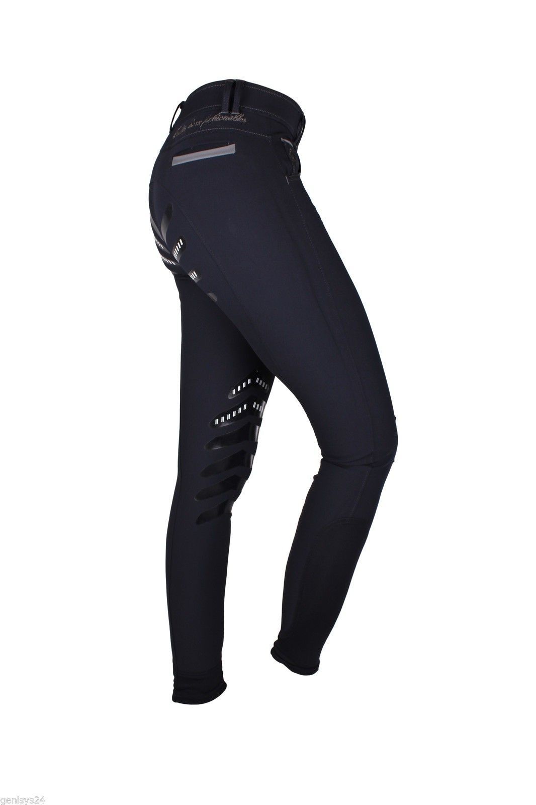 QHP Reithose Regan Silikon Vollbesatz Full Grip navy und weiß Turnier Damen