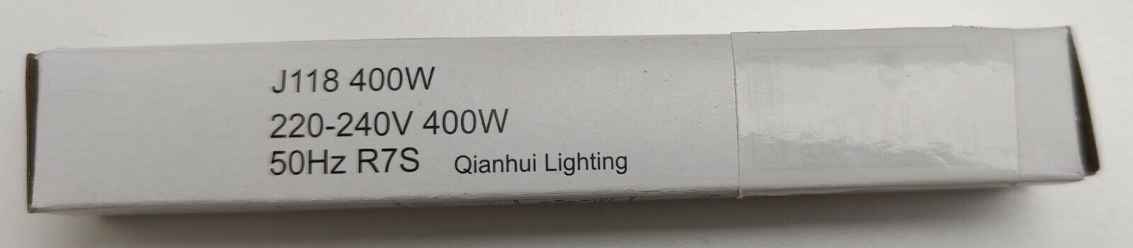 Wir bieten an: Qianhui Lighting ECO Halogenstab, J118, 400W, 50Hz, R7S, 8600LM, 2800k, warmweiß Das Halogen Leuchtmittel R7s zählt zu der Kategorie der Halogenstäbe. Technische Daten Watt 400 ECO Ersetzt Watt 500 Lumen 8600lm Sockel R7s Kelvin 2800K Lichtfarbe warmweiß Dimmbar nicht dimmbar dimmbar