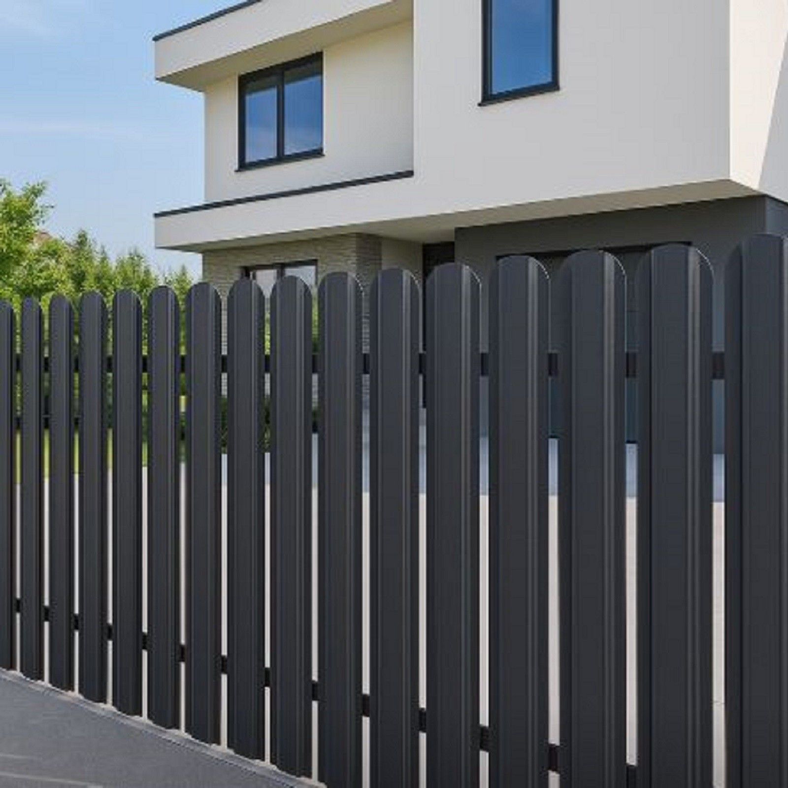QLS QLS 1 Stk. Zaunlatte 120x10,5cm Metall Graphit Matt Verzinkt Rundkopf Modern 11352