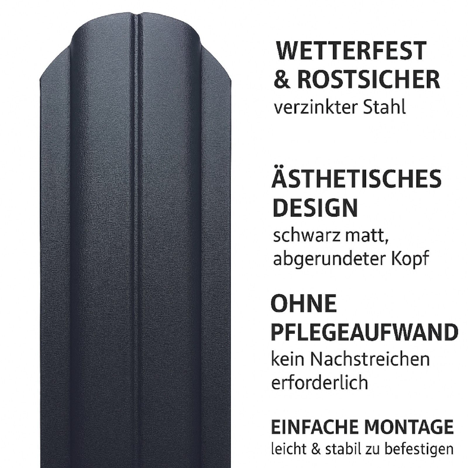 QLS QLS 1 Stk. Zaunlatte 120x10,5cm Metall Schwarz Matt Verzinkt Rundkopf Modern 11351