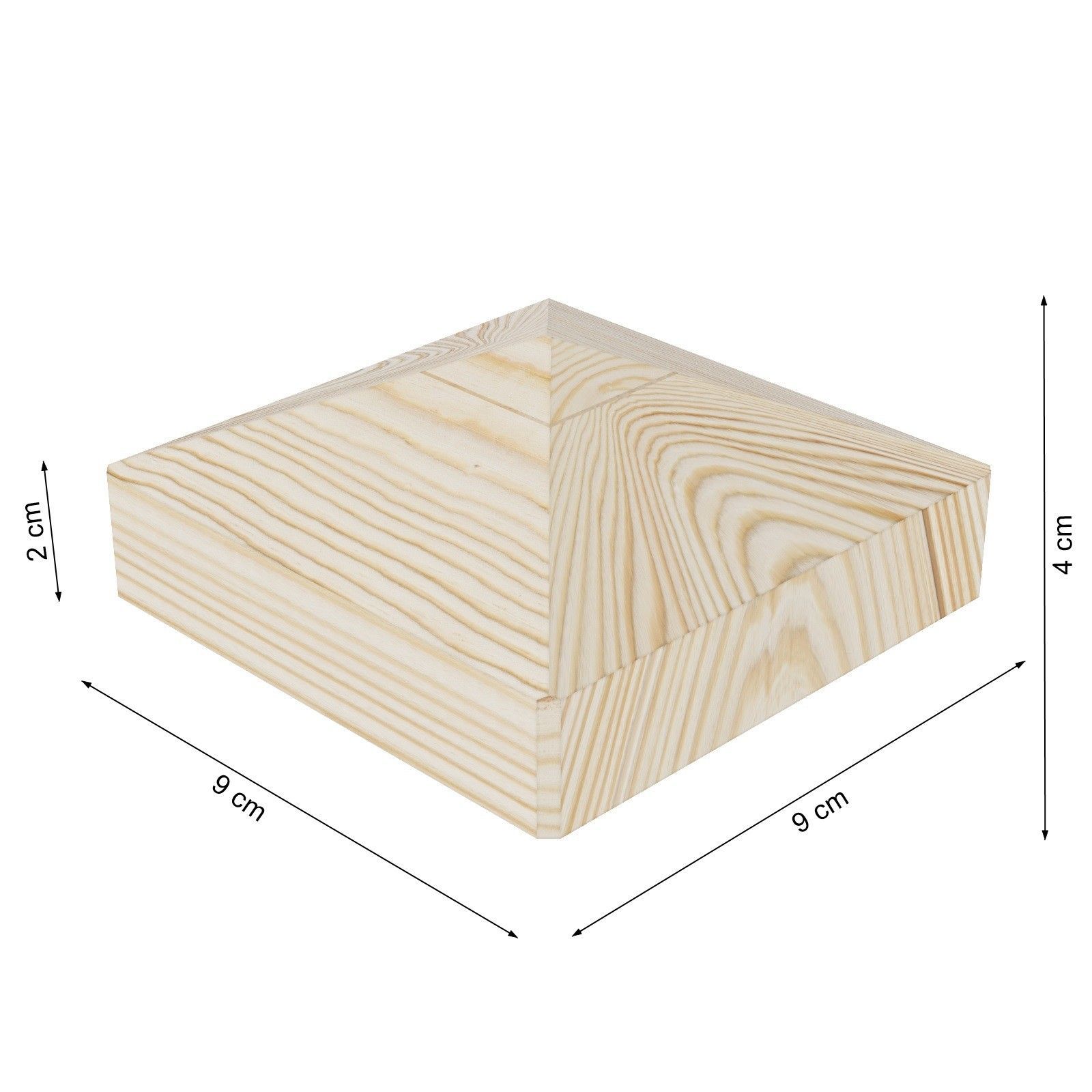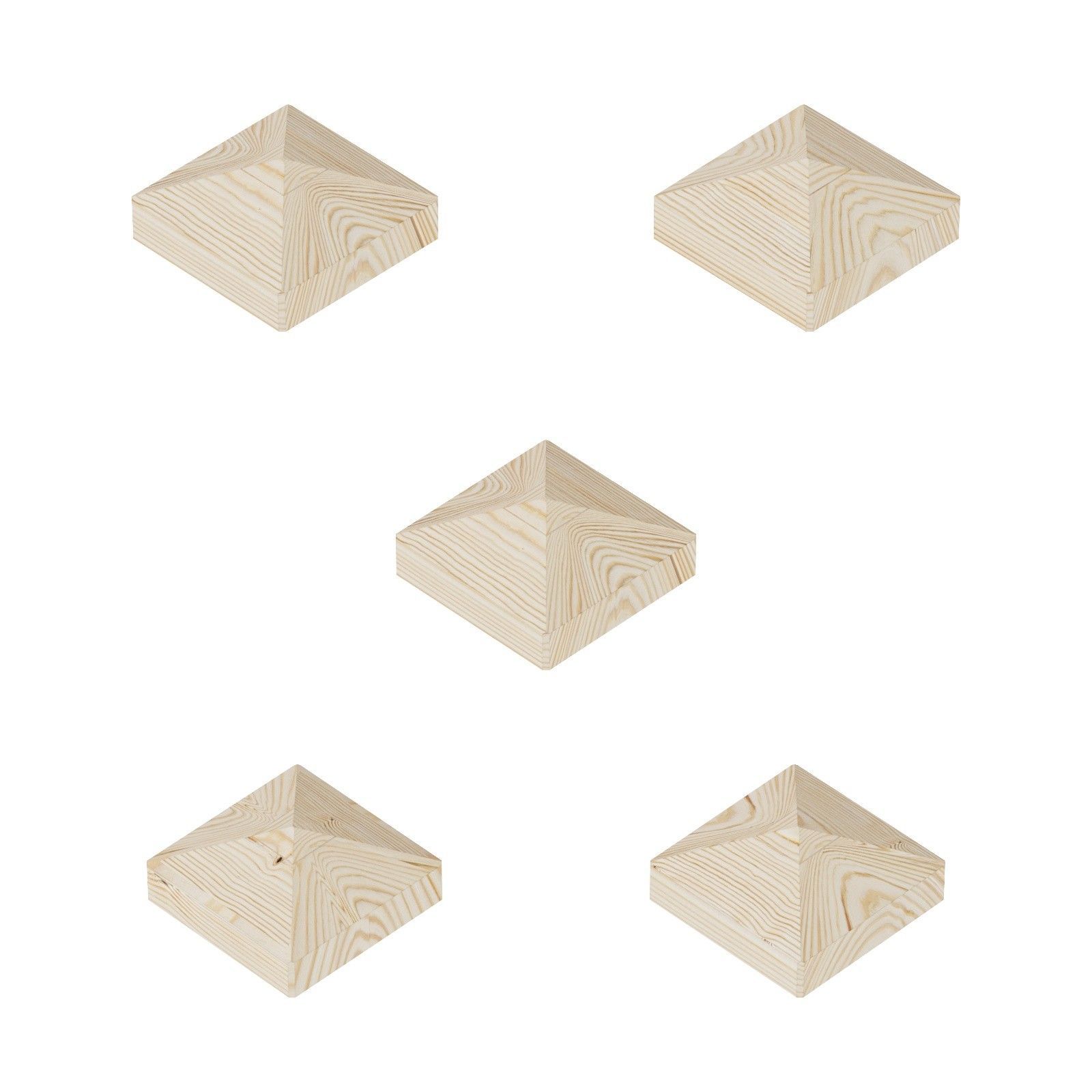 QLS QLS 5 Stück Pfostenkappe 9x9 cm aus Holz Pyramiden Form für Holz-Balken Pfosten 11246
