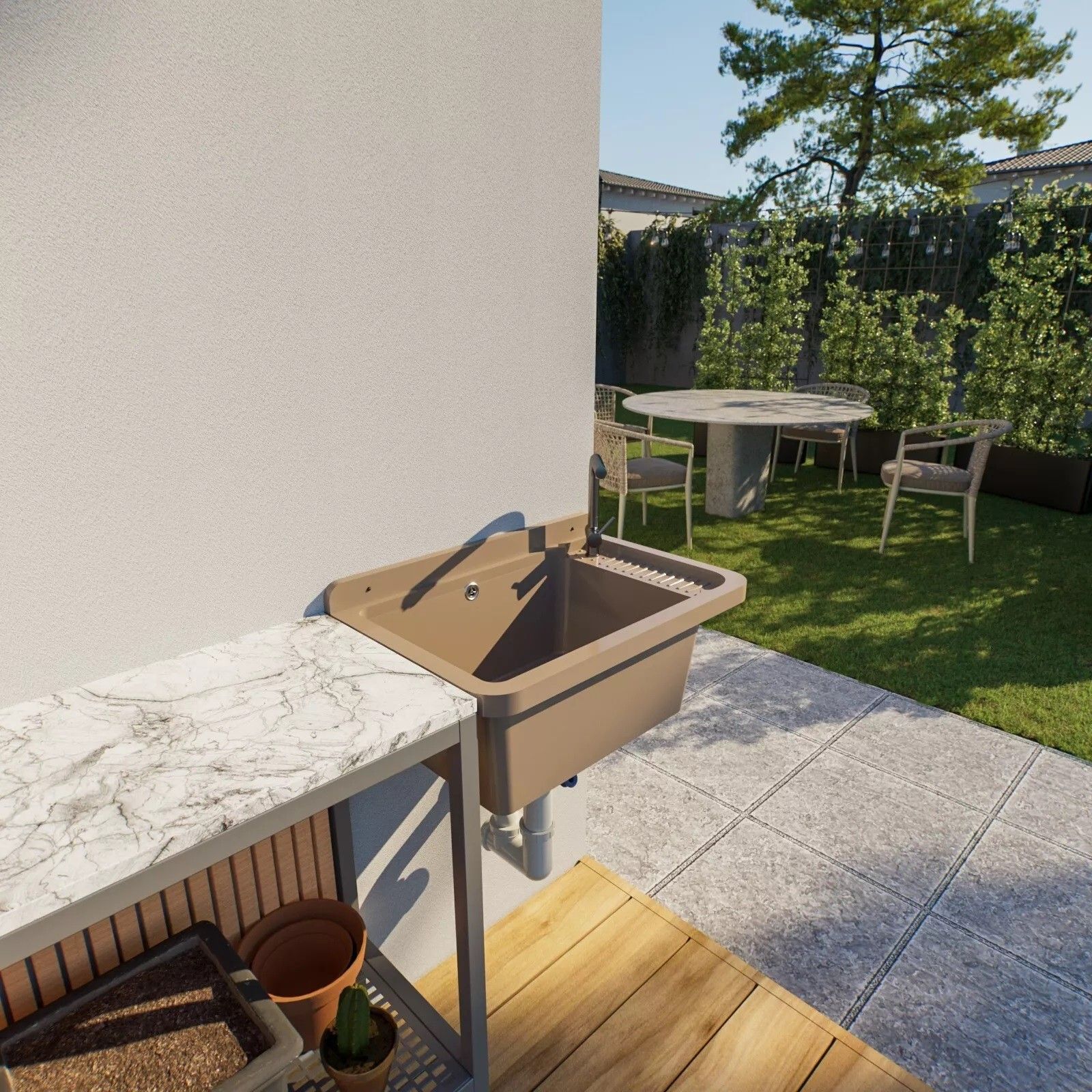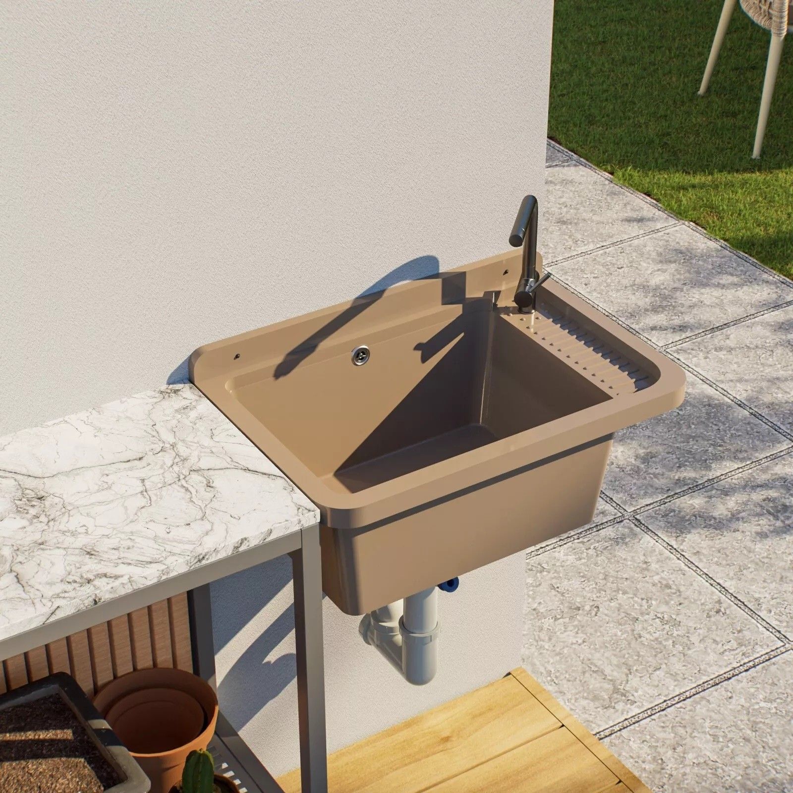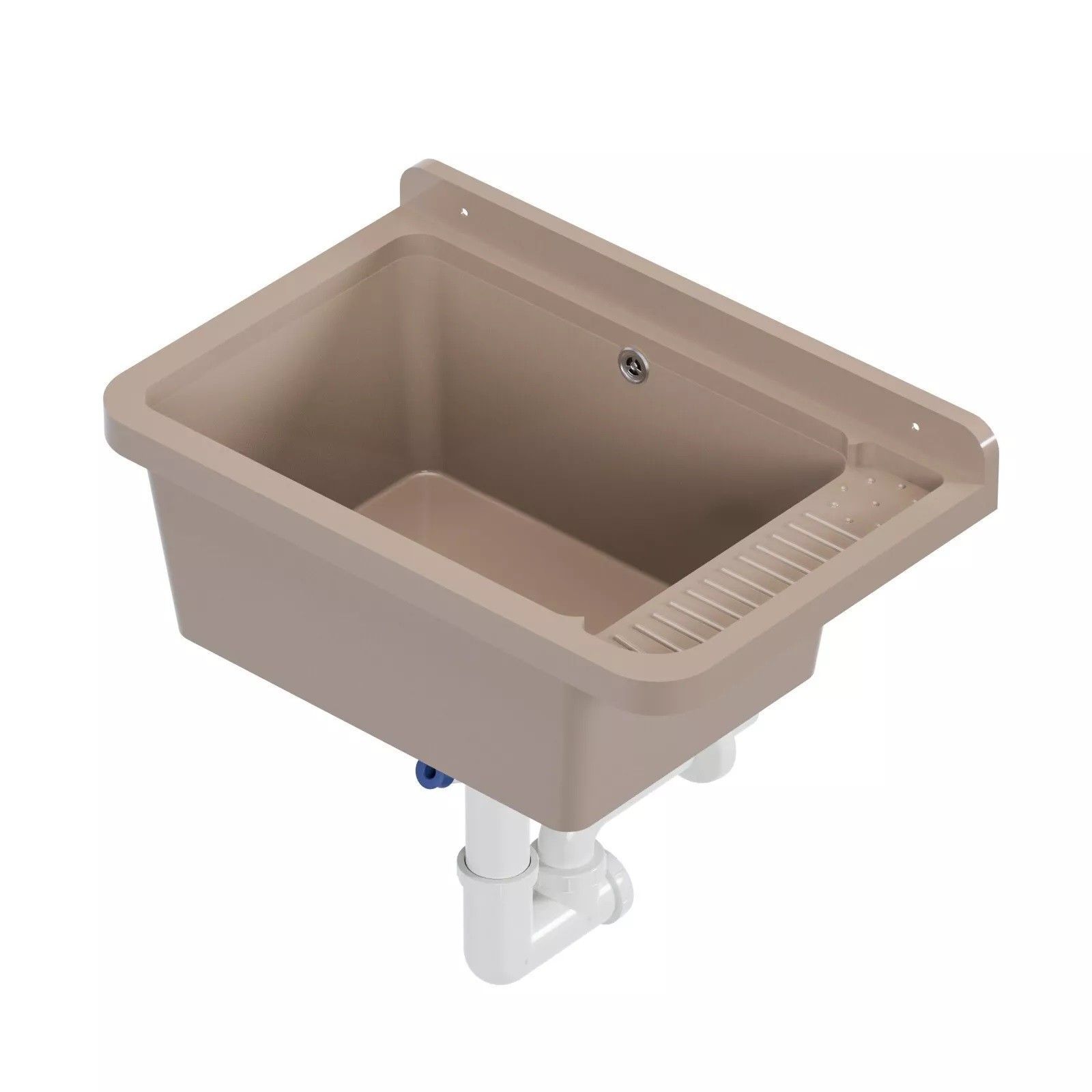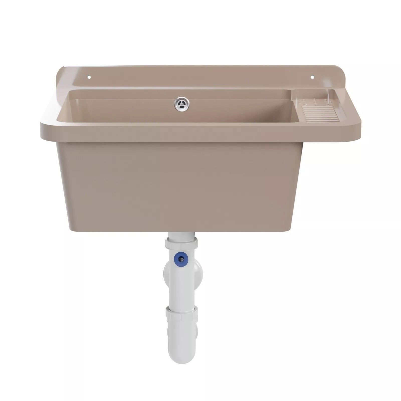 QLS QLS Ausgussbecken 50x34 cm aus Kunststoff mit Siphon Beige Garage Werkstatt 11120
