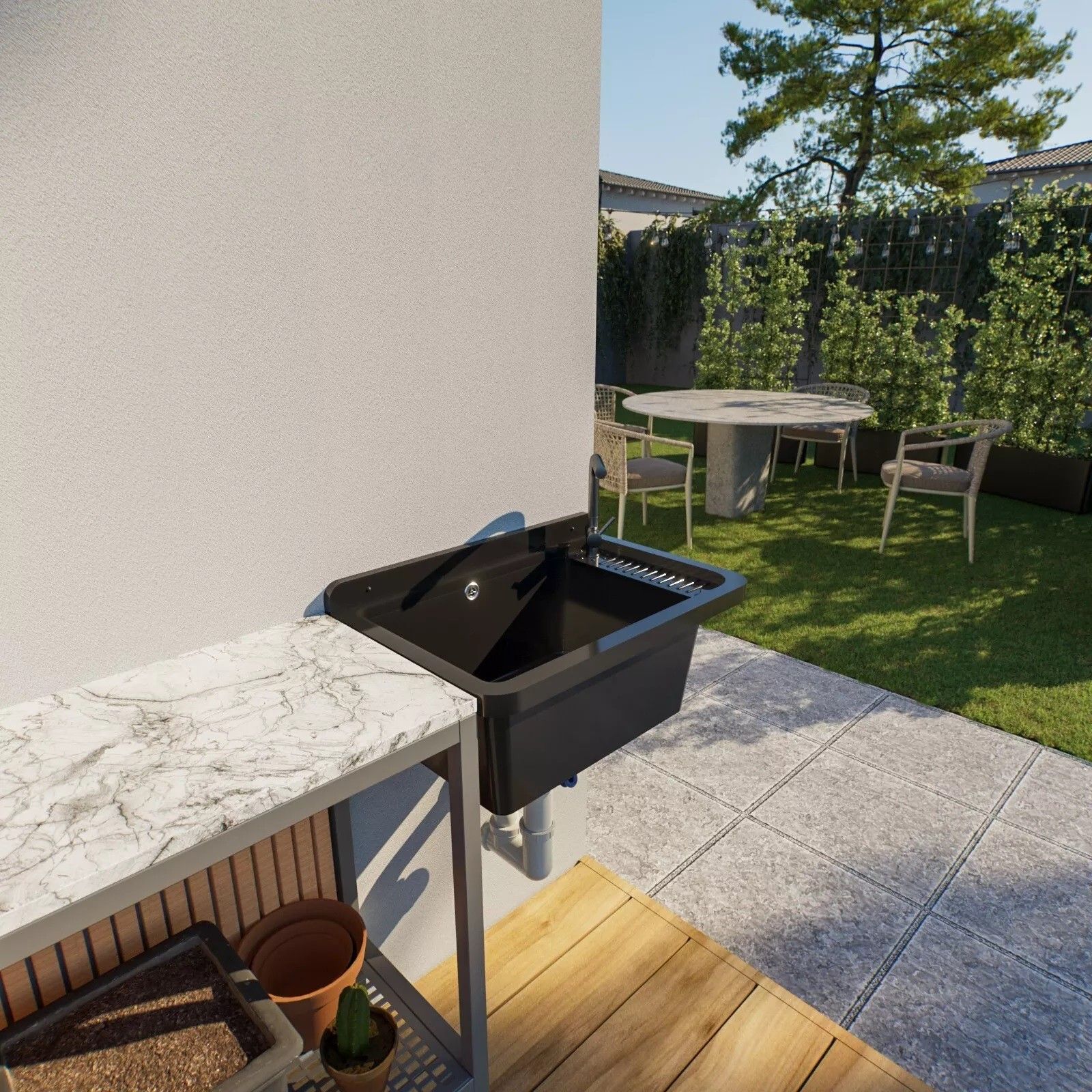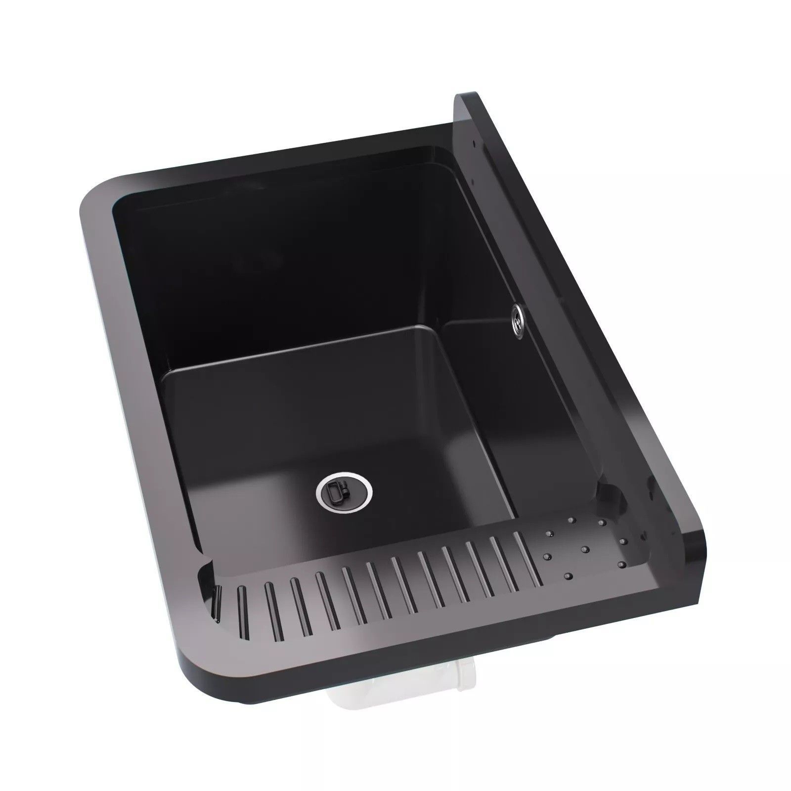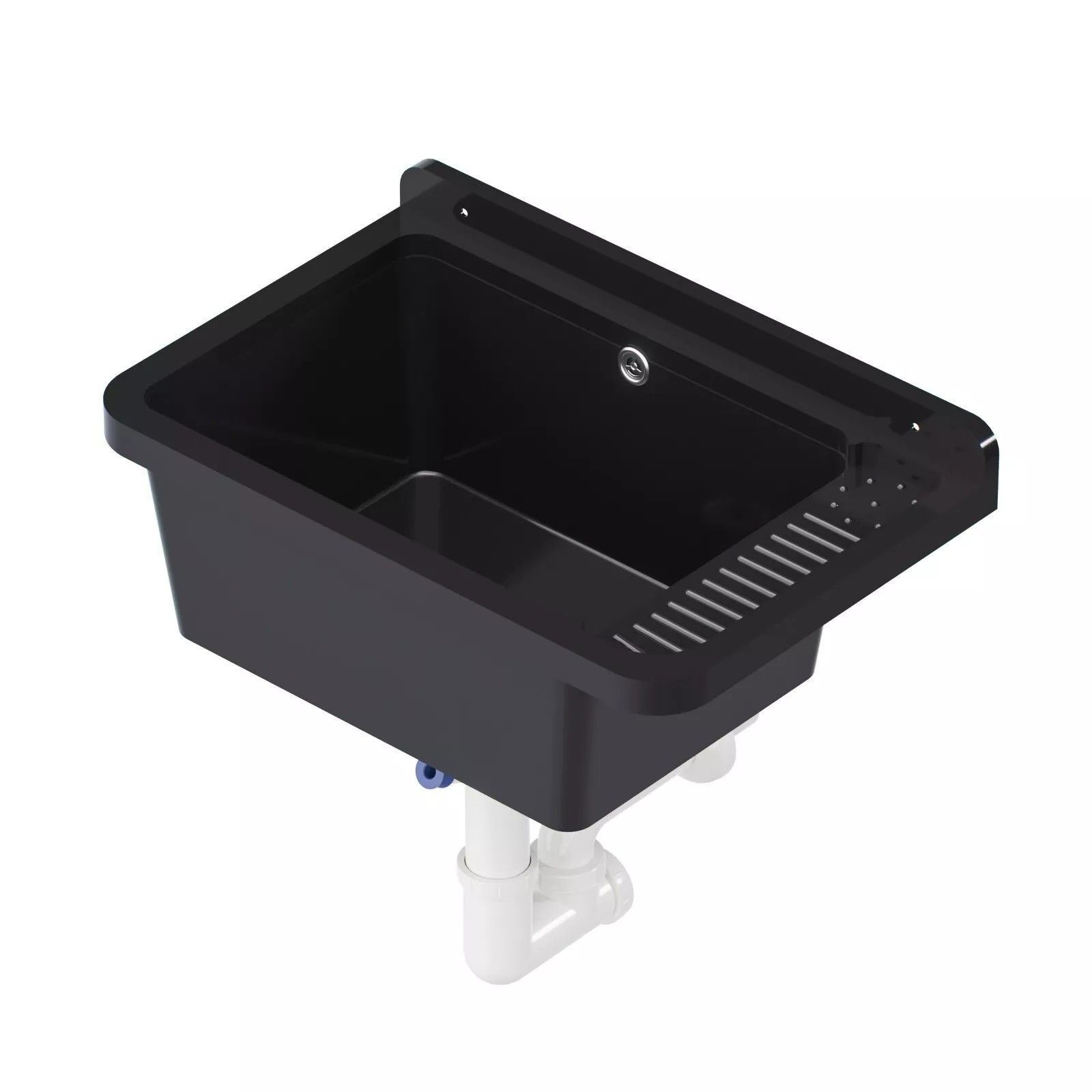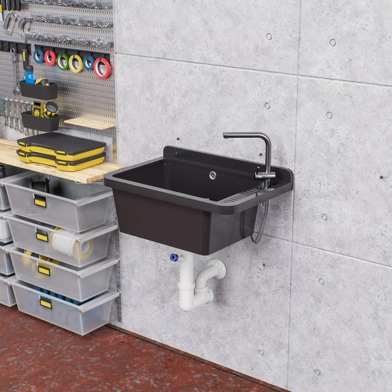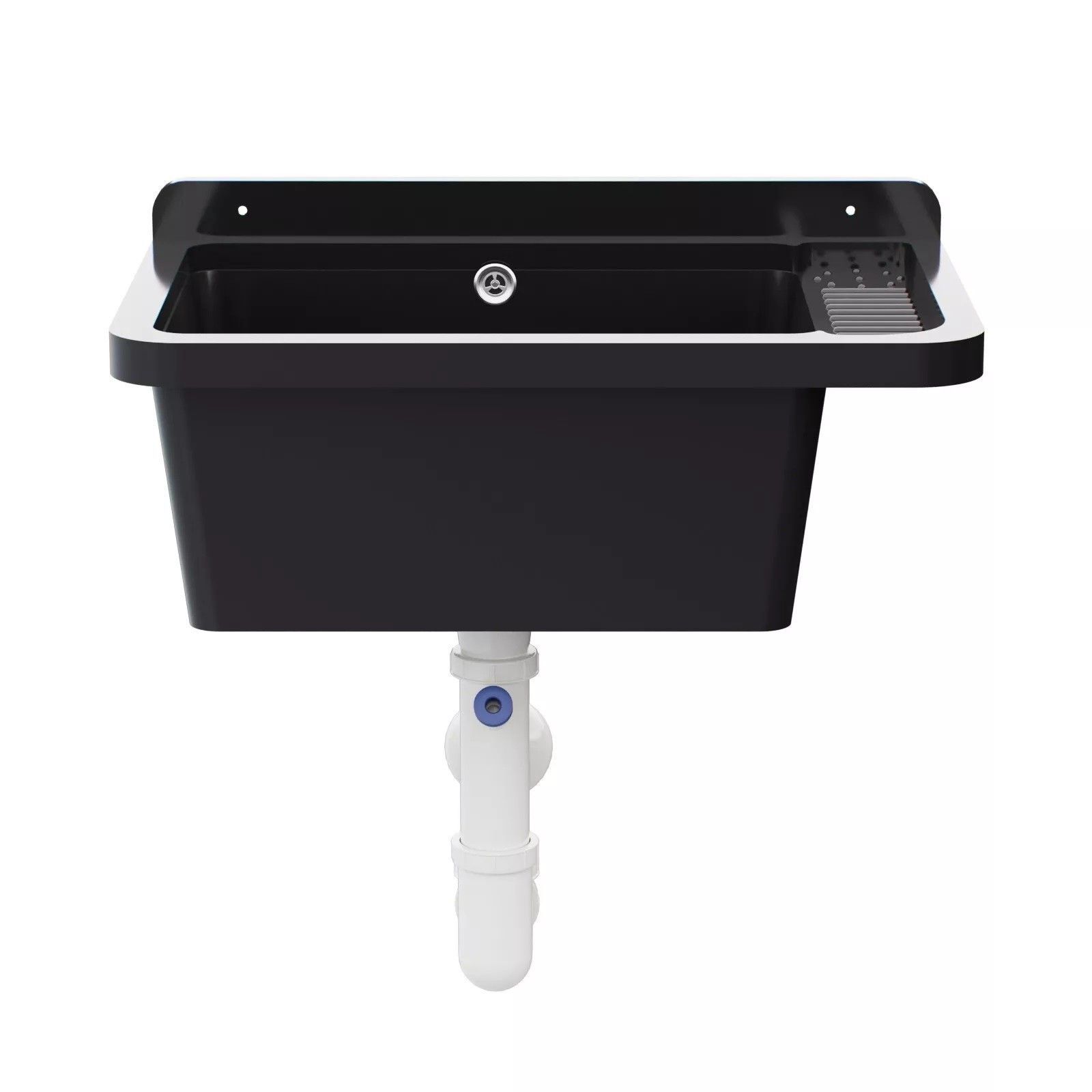 QLS QLS Ausgussbecken 50x34 cm aus Kunststoff mit Siphon Schwarz Garage Werkstatt 11121