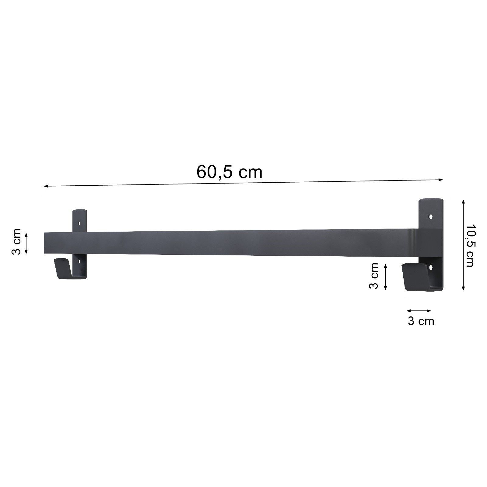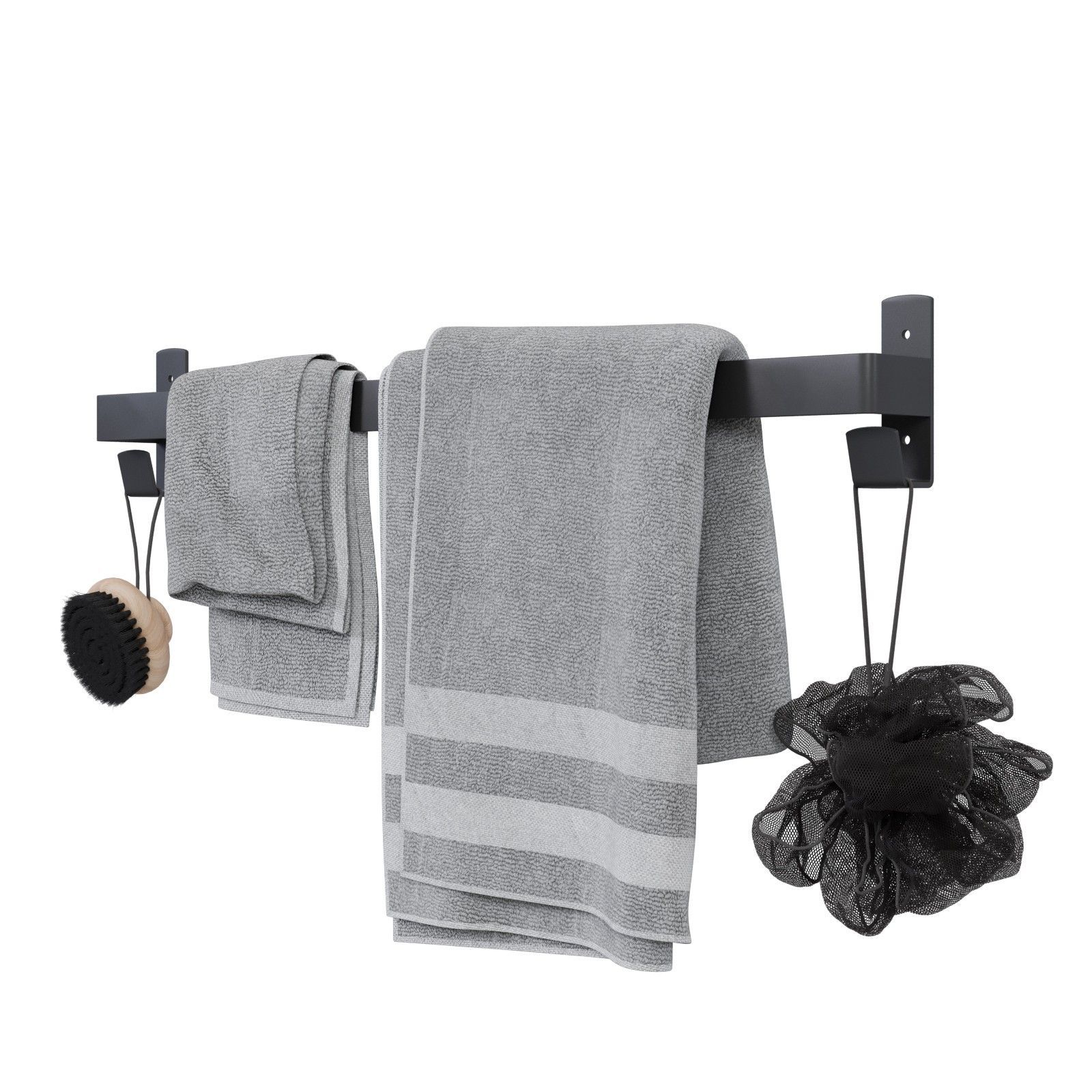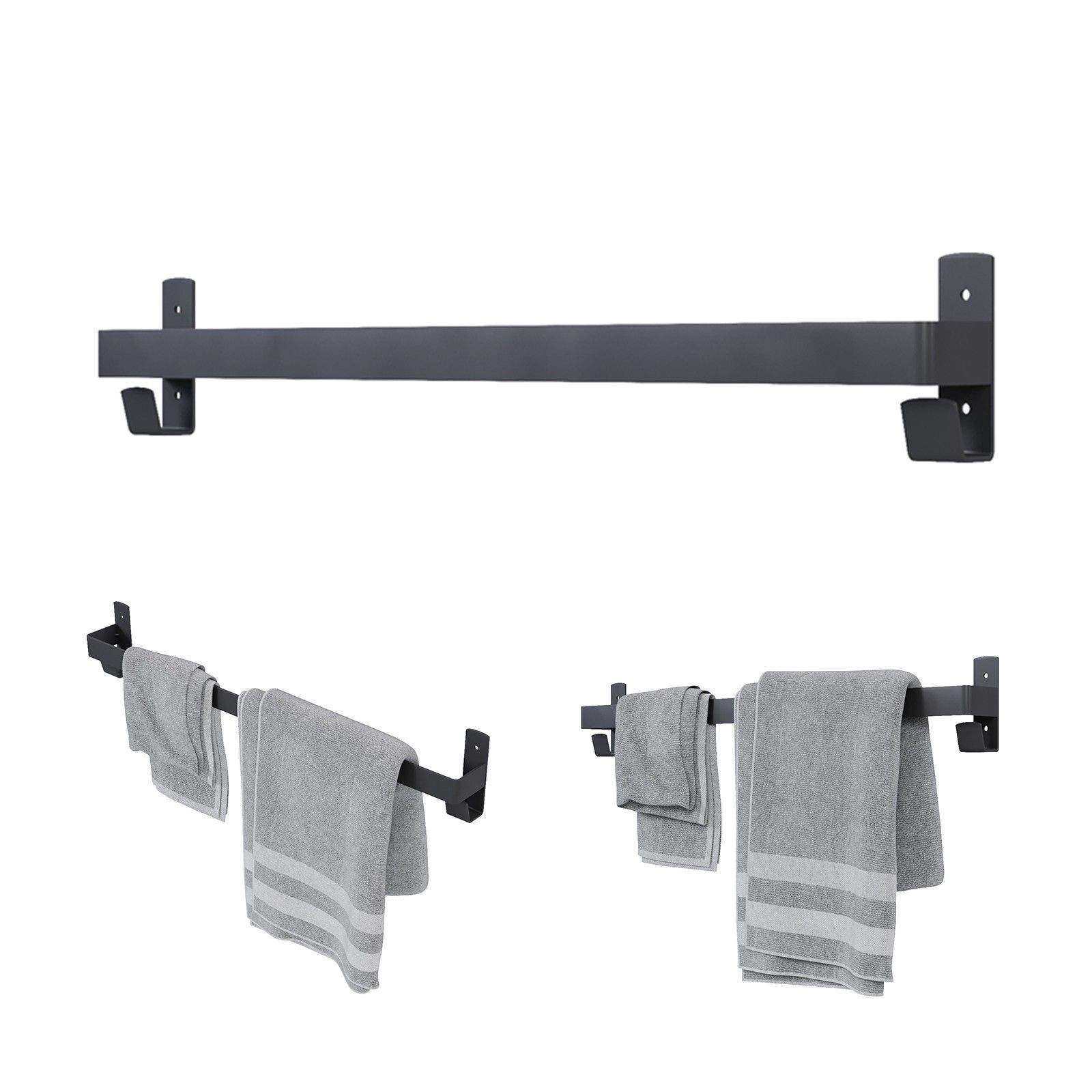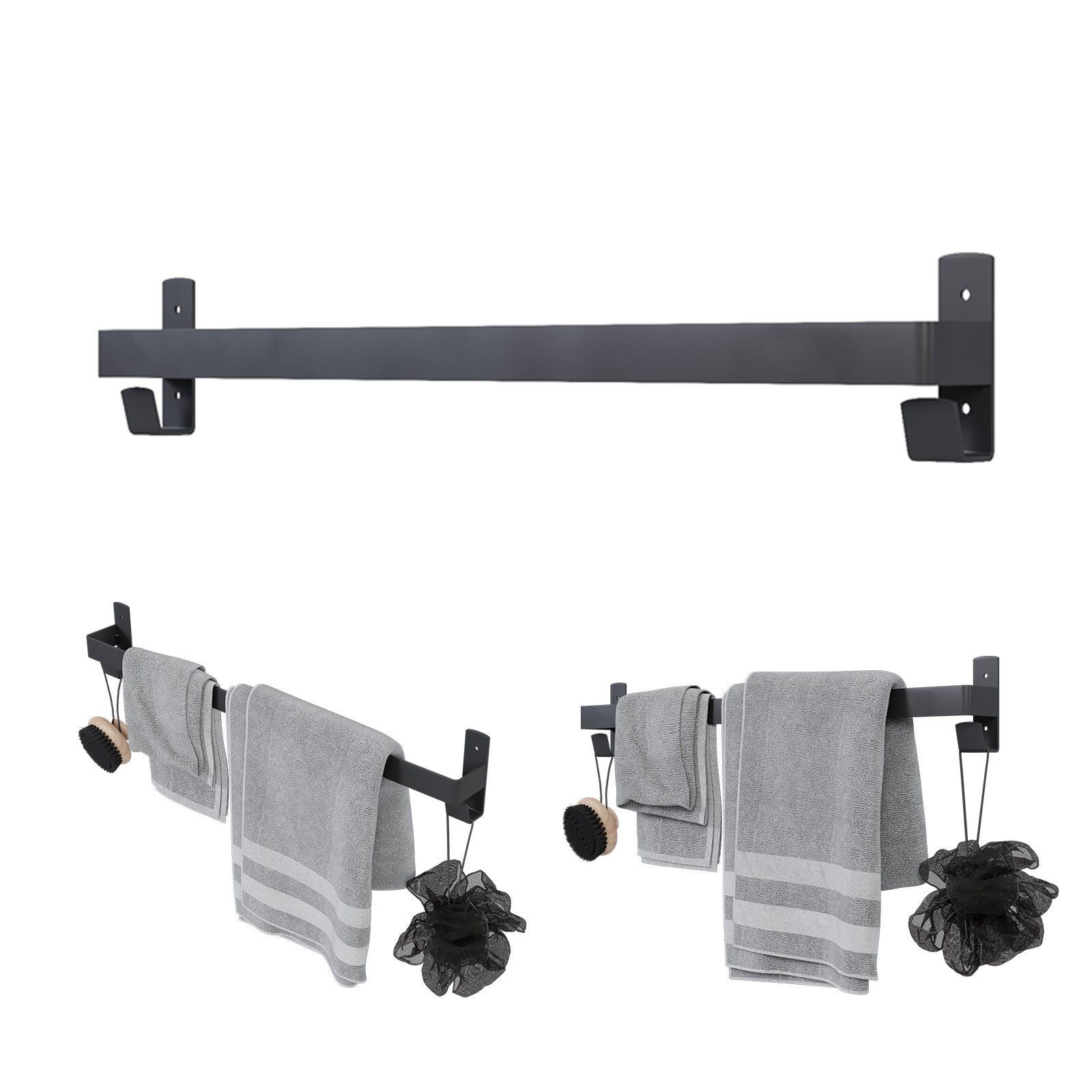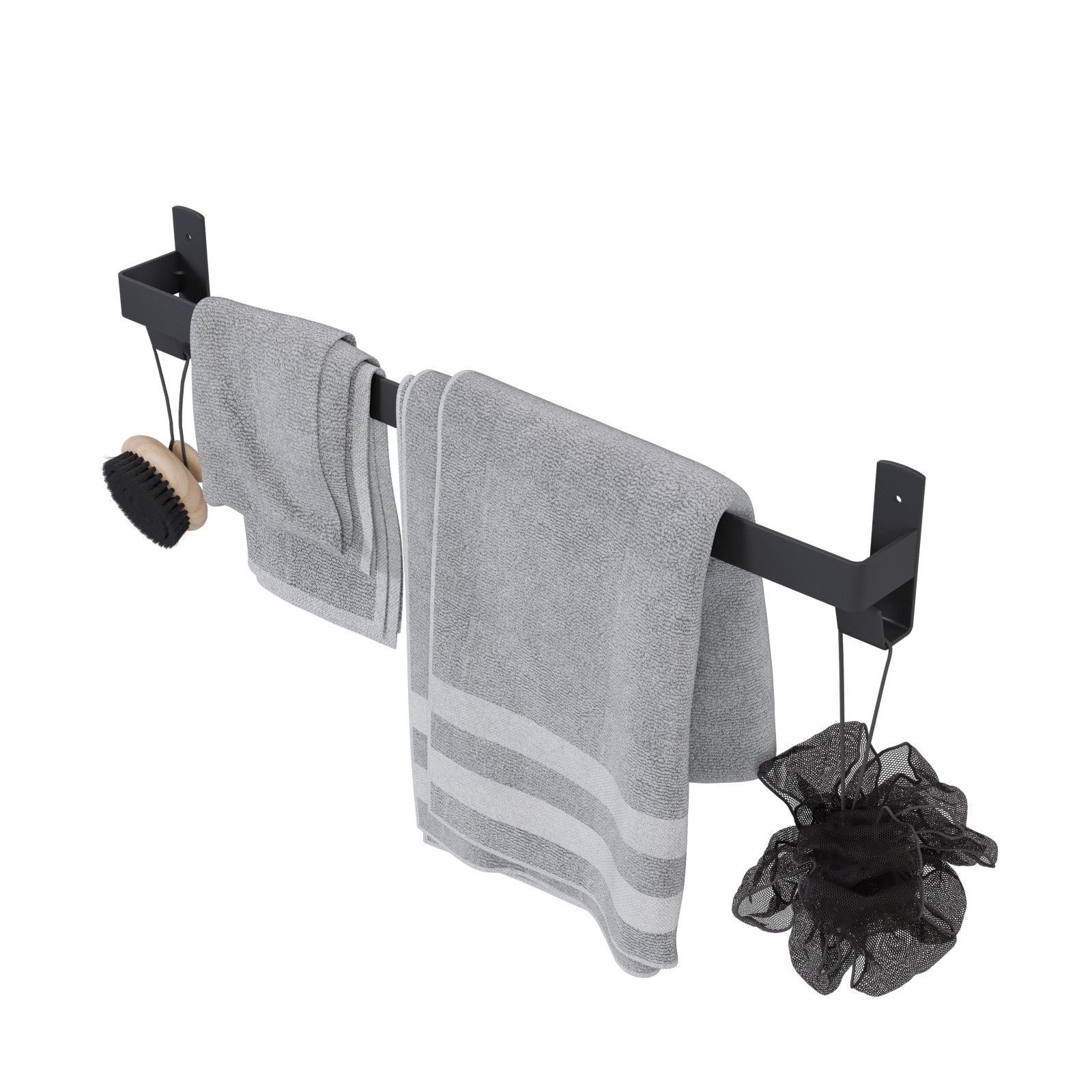 QLS QLS Badetuch- Handtuchhalter 60 cm mit 2 Haken für Badezimmer Schwarz aus Stahl 11108
