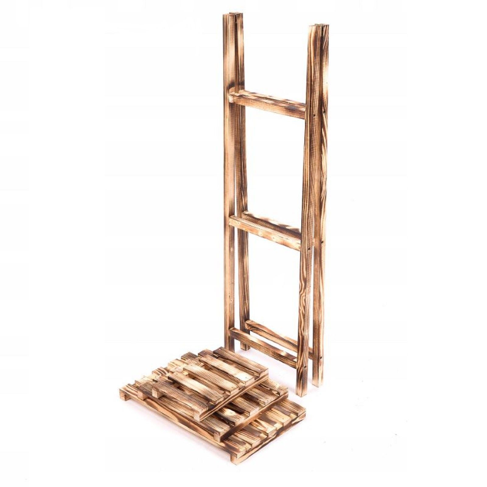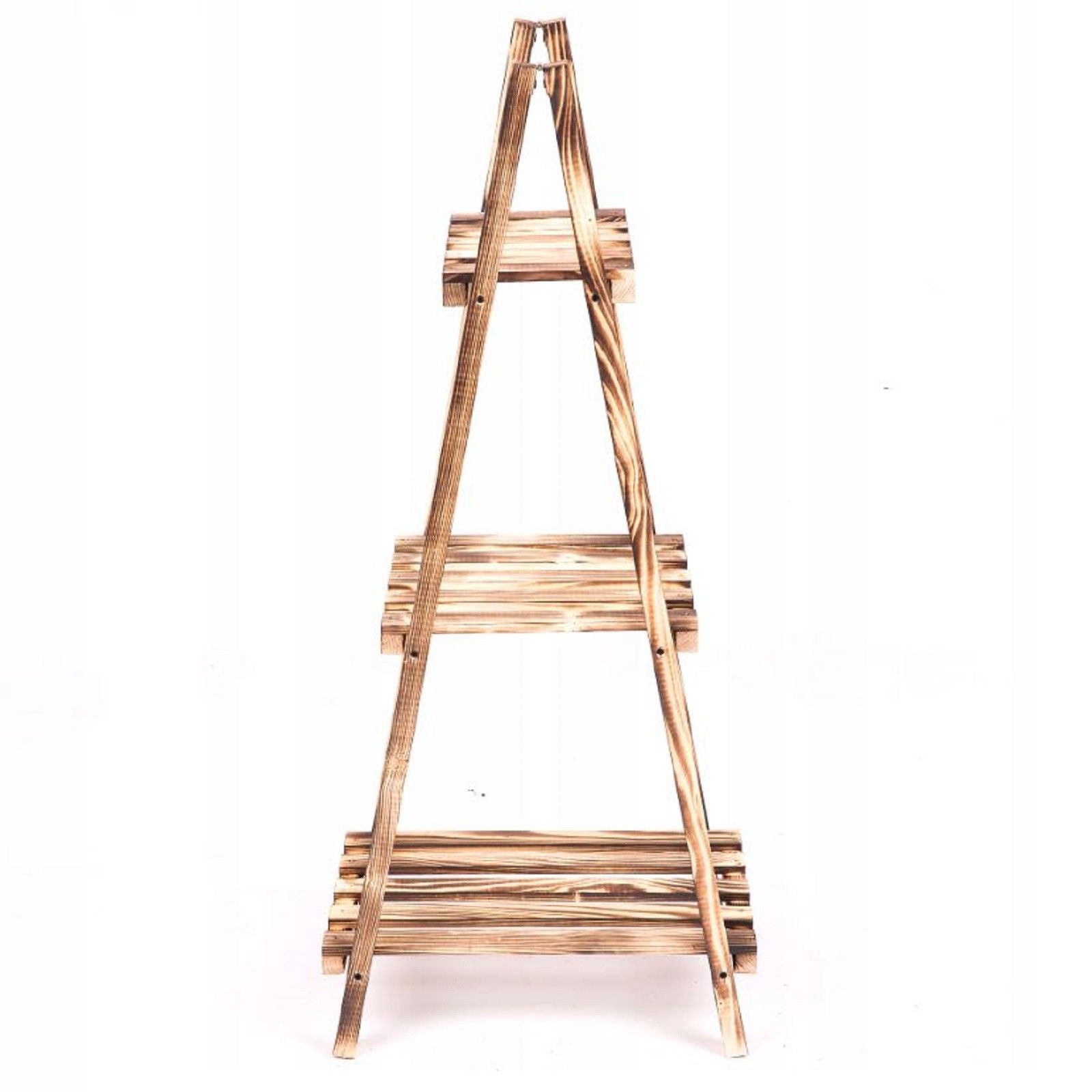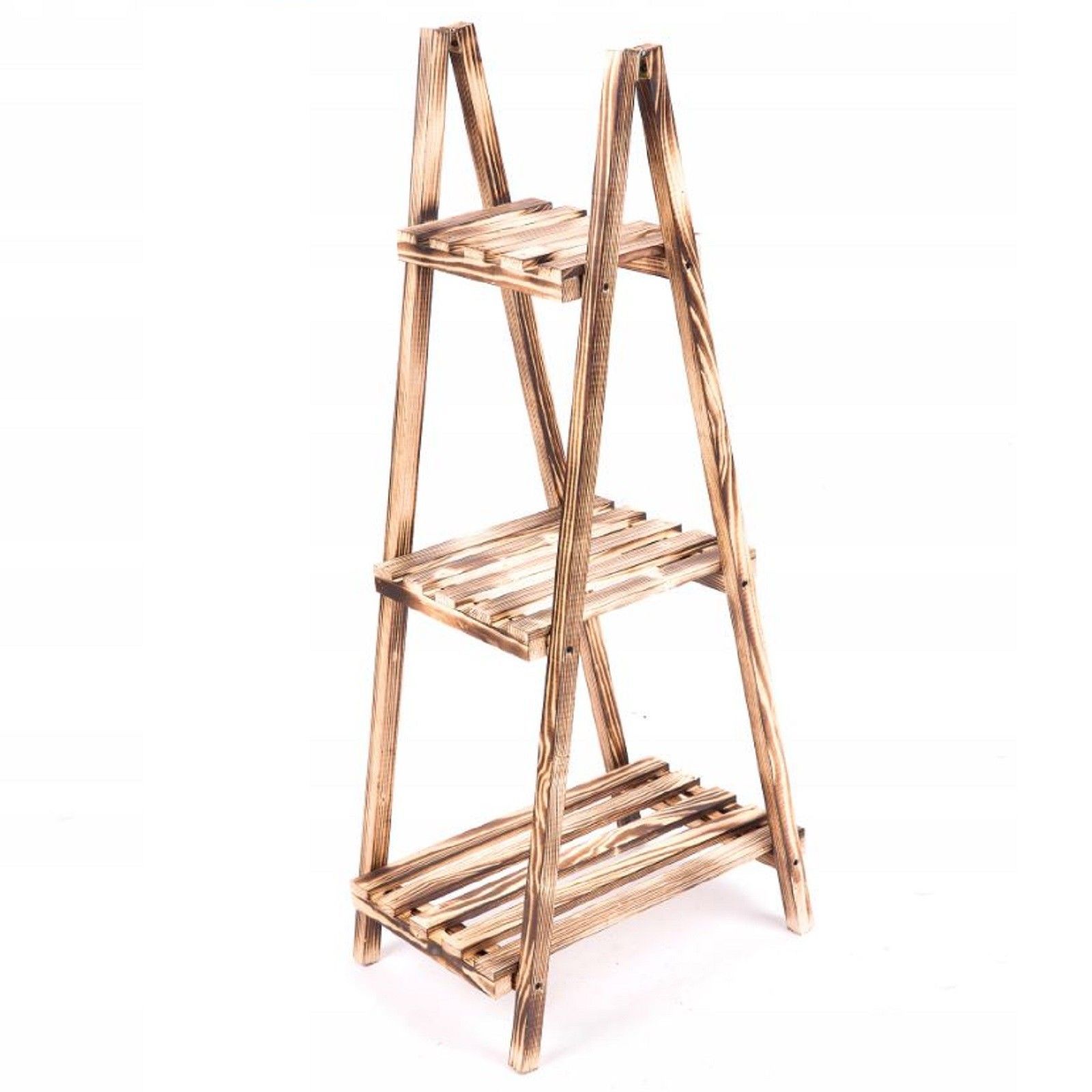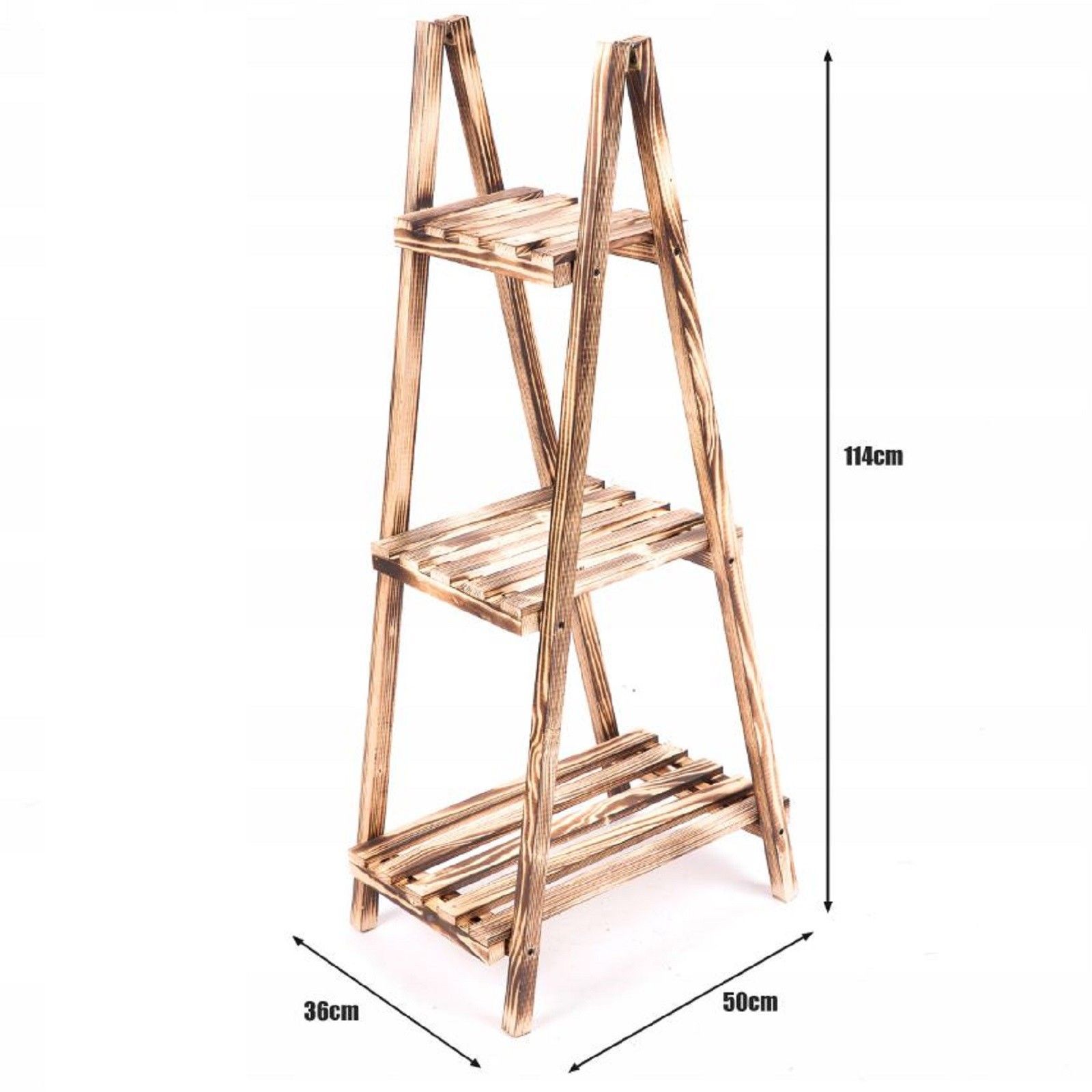 QLS QLS Blumenständer aus Holz 50x36x114 cm 3 Etagen geflammt Innen- Außenbereich 11307