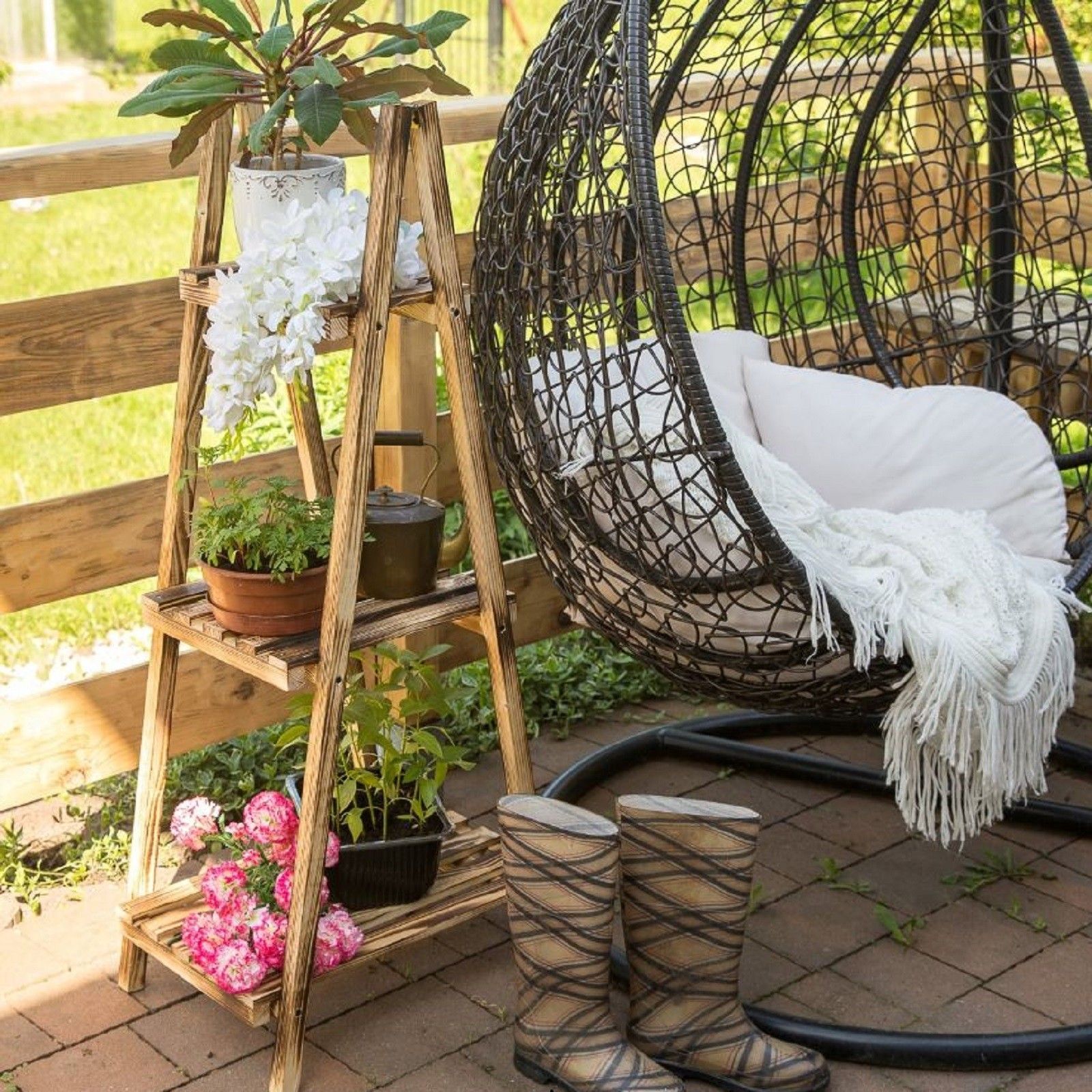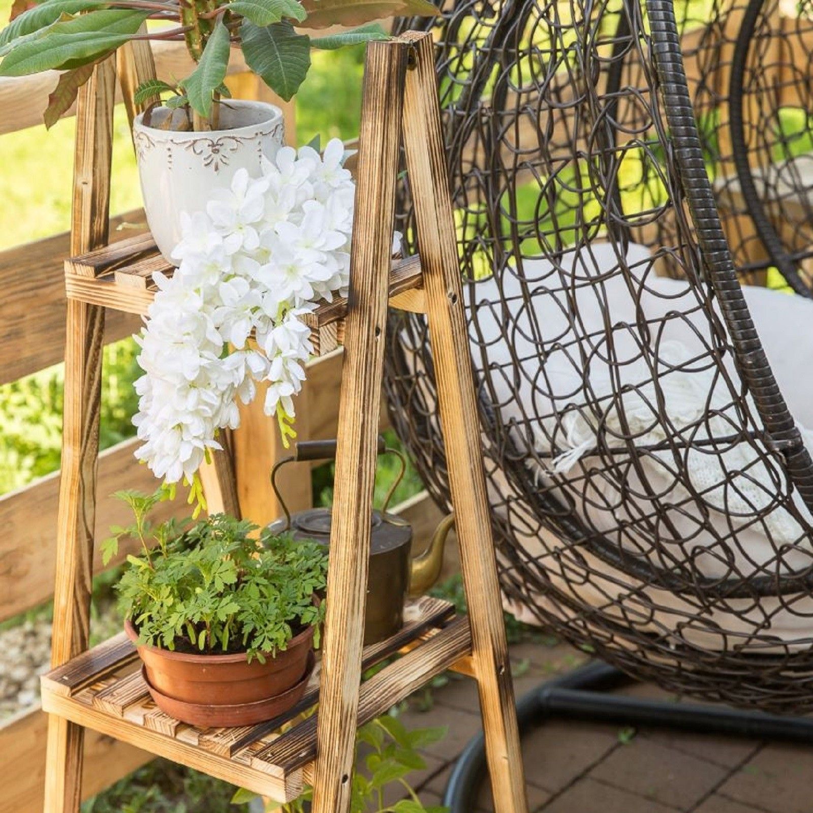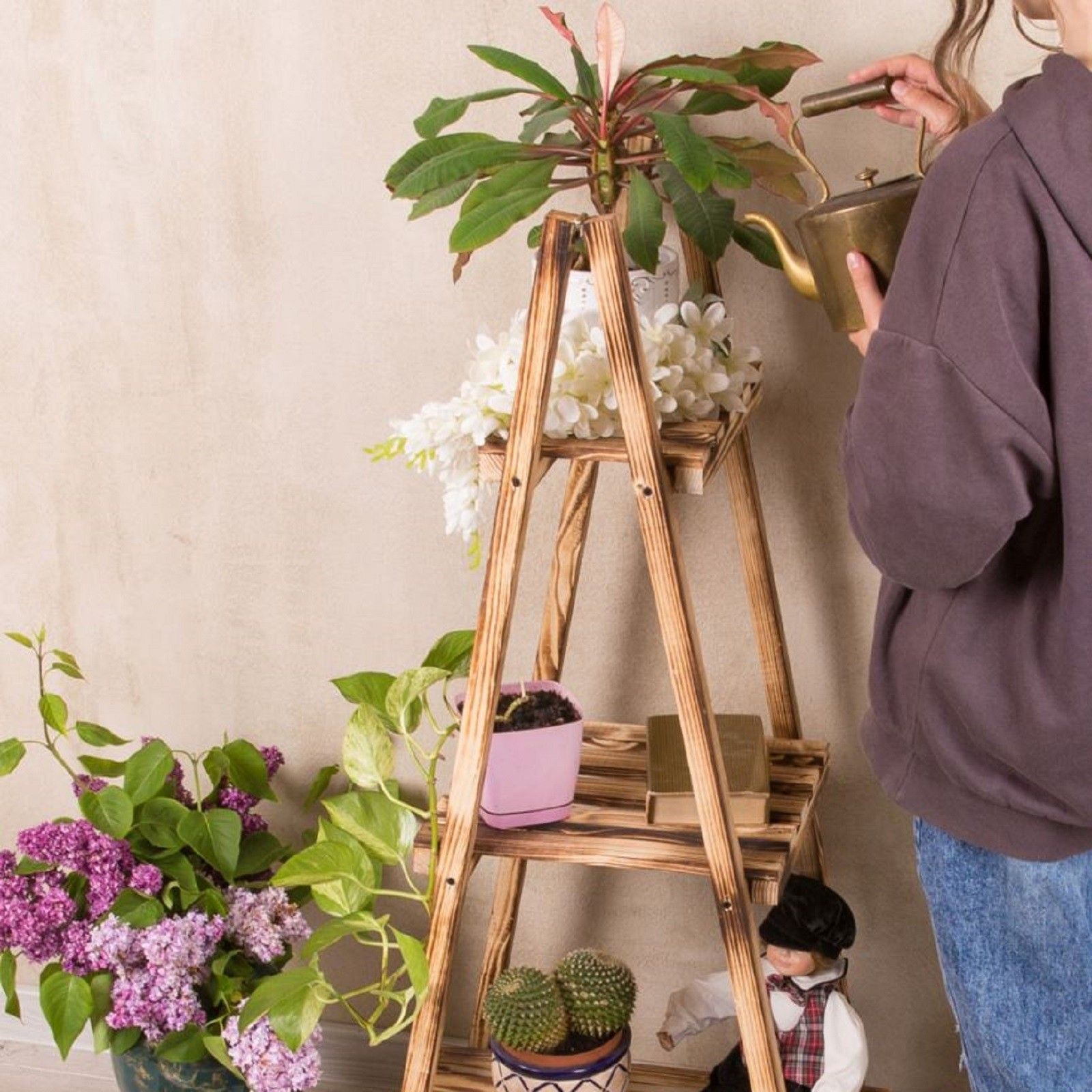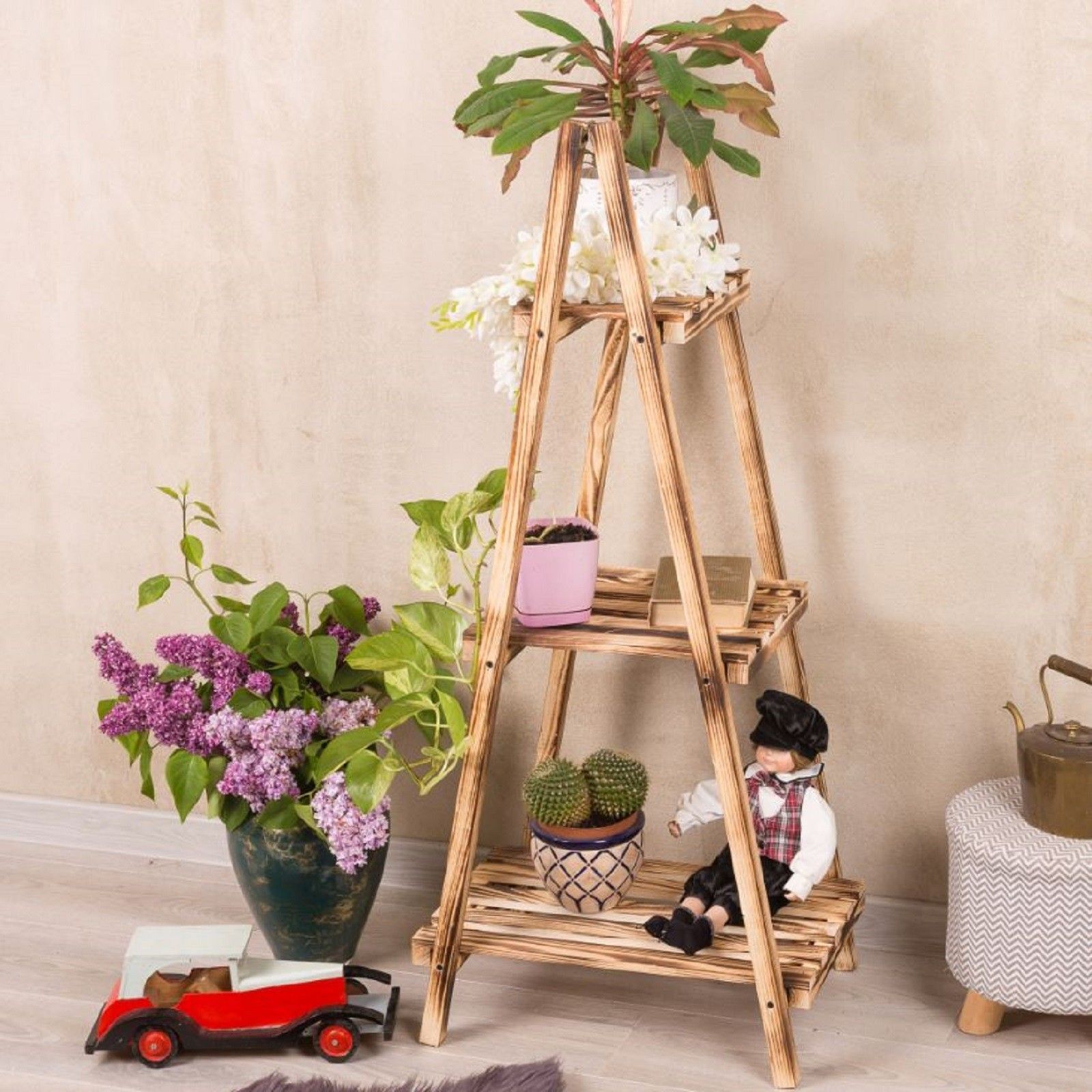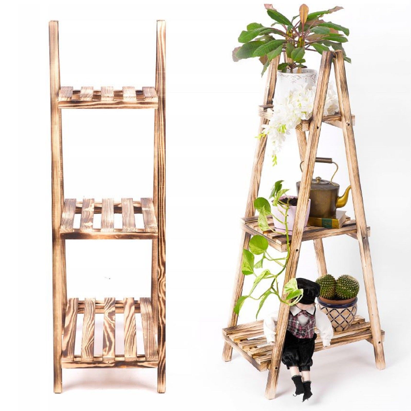 QLS QLS Blumenständer aus Holz 50x36x114 cm 3 Etagen geflammt Innen- Außenbereich 11307