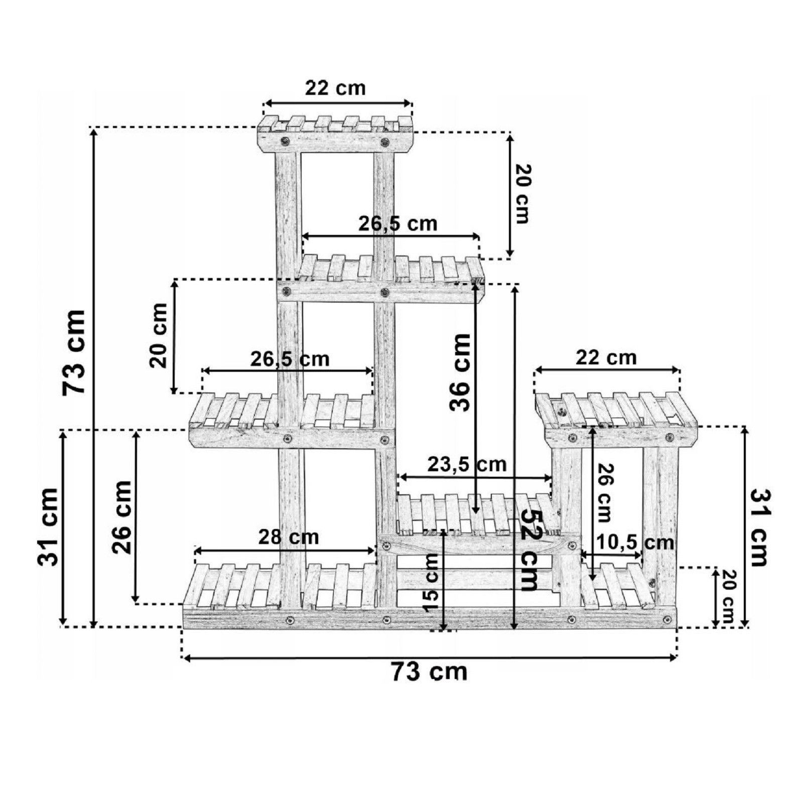 QLS QLS Blumenständer aus Holz mit 5 Ebenen 73x20x73 cm Pflanzenregal für innen 11304